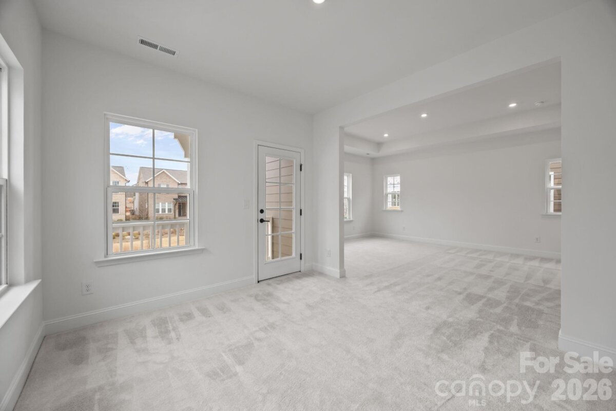 The only single family new home construction zoned for Ballantyne Ridge High School in Pineville. Welcome home! This Brentwood Floorplan with large ensuite on the main floor sits on a homesite that backs up to natural space. Complete with a gourmet kitchen, quartz countertops and 10ft ceilings. On the 2nd floor you'll find 9ft ceilings. This level includes the spacious primary suite with upgraded tile shower with bench seat. Generously sized secondary bedrooms and closets along with a loft space, and a generously sized laundry room. The 3rd floor boasts a large bedroom with walk-in closet, and full bath. It also includes large bonus space that can be used many different ways. The 2 car detached garage with attic pull down for storage and a side driveway with parking pad. Amazing amenities to include a pool with a cabana, pickleball courts, playground and dog park. Lots of sidewalks and open greenspace. Take advantage of up to $30K in flex cash if our approved lender is used. This incentive can be used towards closing costs and/or to buy down the interest rate. Home is proposed to start construction mid-late March.