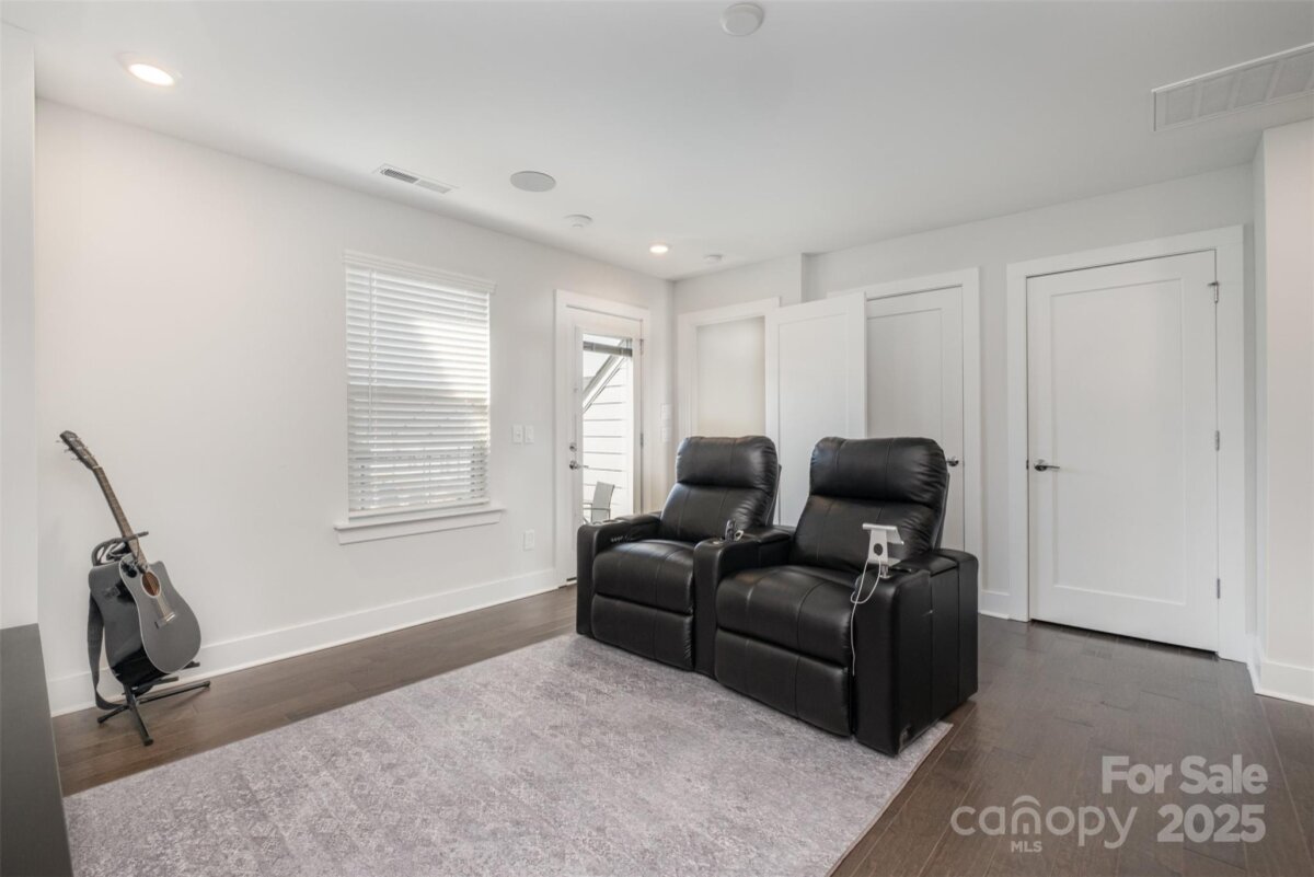 Experience elevated city living in one of Charlotte’s most vibrant communities. This modern Belmont neighborhood townhome—featured on "The American Dream" TV Show on ADTV —blends luxury design, thoughtful functionality, and an incredible location just minutes from Uptown, South End, Plaza Midwood, and Optimist Hall. Inside, light-filled open spaces and sleek modern finishes create a sense of effortless sophistication. The chef’s kitchen features quartz countertops, custom cabinetry, and the highest-level KitchenAid appliance package offered by the builder, opening to a spacious dining and living area ideal for gatherings or relaxing at home. Real hardwood floors extend throughout the entire home provide a warm, elevated touch — one of the most substantial upgrades available in the community. A dedicated main-level office supports today’s work-from-home lifestyle and opens to a private back deck that extends the living space outdoors. Three separate outdoor retreats—including a ground-level patio, main-level balcony deck, and spacious rooftop terrace with skyline views—offer the perfect backdrop for morning coffee, outdoor dining, or sunset evenings above the city. This home is designed for both comfort and connection, enhanced by premium technology and smart-home upgrades. Built-in Sonos ceiling speakers on every level, whole-home hardwired internet, and wireless access points on each level provide top-tier connectivity. The smart garage system offers app control plus exterior touchpad entry for convenience. The ground floor adds even more flexibility with a private bedroom and full bathroom just off the 2-car garage entry—an ideal setup for guests, an additional office, or a quiet retreat separate from the main living spaces. This level also provides direct access to the back patio, creating an easy indoor–outdoor flow perfect for morning coffee, pets, or a peaceful spot to unwind. Upstairs, the dual primary bedrooms each offer walk-in closets and spa-inspired bathrooms, providing privacy and flexibility for guests, roommates, or multiple work setups. The main primary suite features studio-grade acoustic window inserts for exceptional noise reduction, creating a quiet retreat in the heart of the city. A custom "Closets by Design" primary closet adds style and organization to the suite. The uppermost penthouse level offers exceptional flexibility with a fourth bedroom or private office suite, complete with its own full bathroom. This entire level can serve as a guest retreat, creative workspace, or second primary option. From here, step directly onto the rooftop terrace, where panoramic skyline views create an unforgettable extension of your living space. Located in Belmont—one of Charlotte’s most dynamic and rapidly growing neighborhoods—you’re surrounded by local coffee shops, art studios, breweries, and dining, with quick access to the Rail Trail, Uptown nightlife, and South End’s boutique scene. Walk, bike, or explore everything Charlotte has to offer just outside your front door. Every detail of this home has been curated with intention—from its premium upgrades to its multiple outdoor retreats—offering a lifestyle defined by design, energy, and the best of city living.