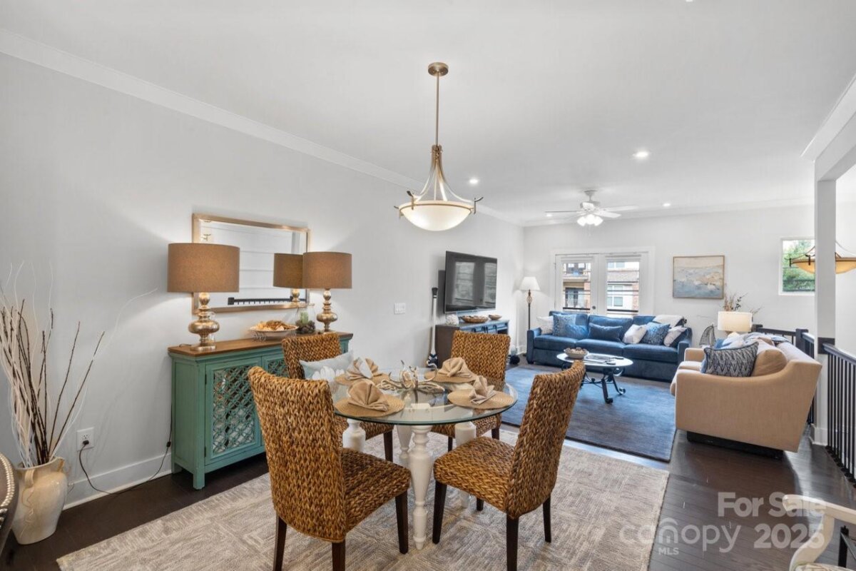 Views, views and more views!! This is the first time a unit with a complete view of uptown Charlotte has been available. Pulte had a wait list for this special building when they were first sold due to the demand. This stunning townhome is absolutely gorgeous with an open floor plan, hardwoods throughout the entire unit and a rooftop terrace with a full view of Uptown. Four-story home with a chef's dream kitchen and island with seating. Stainless steel appliances. Huge master bedroom with large en-suite and 2 additional bedrooms with private en-suites. Extra molding detail on the wall in living room and master bedroom. his home is designed for comfort as well as entertaining with two decks. Large garage with 2 tandem spots and storage. Located just short distance from restaurants, bars, Uptown, Plaza Midwood and Noda. This is truly one of the best views that Central Point has to offer. Don't miss this almost new townhome w/a million dollar views and best location. Agent owned.