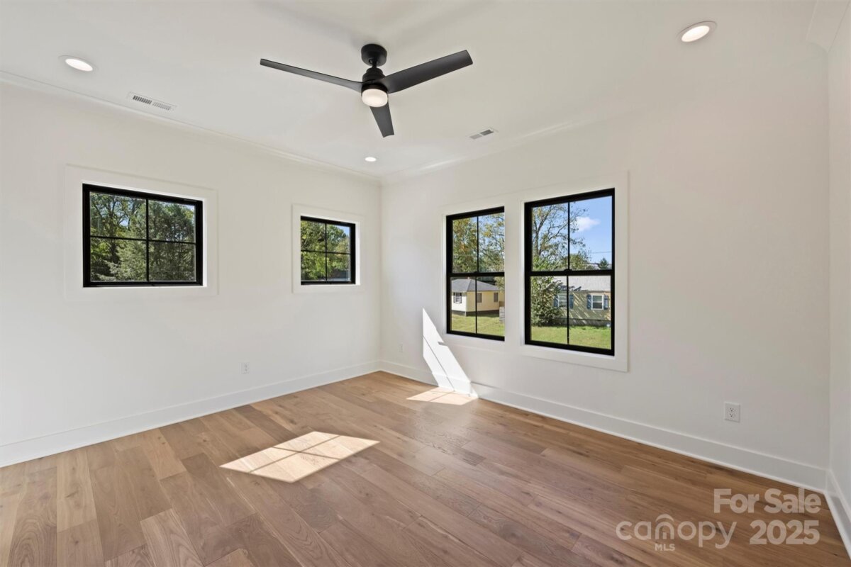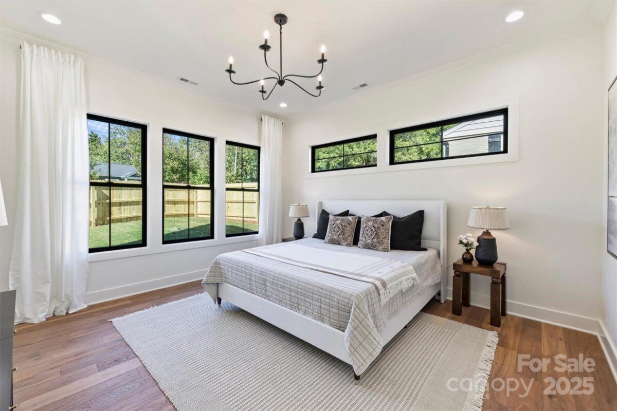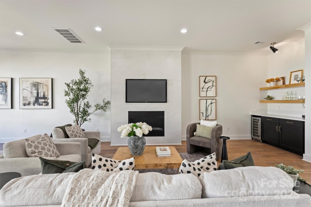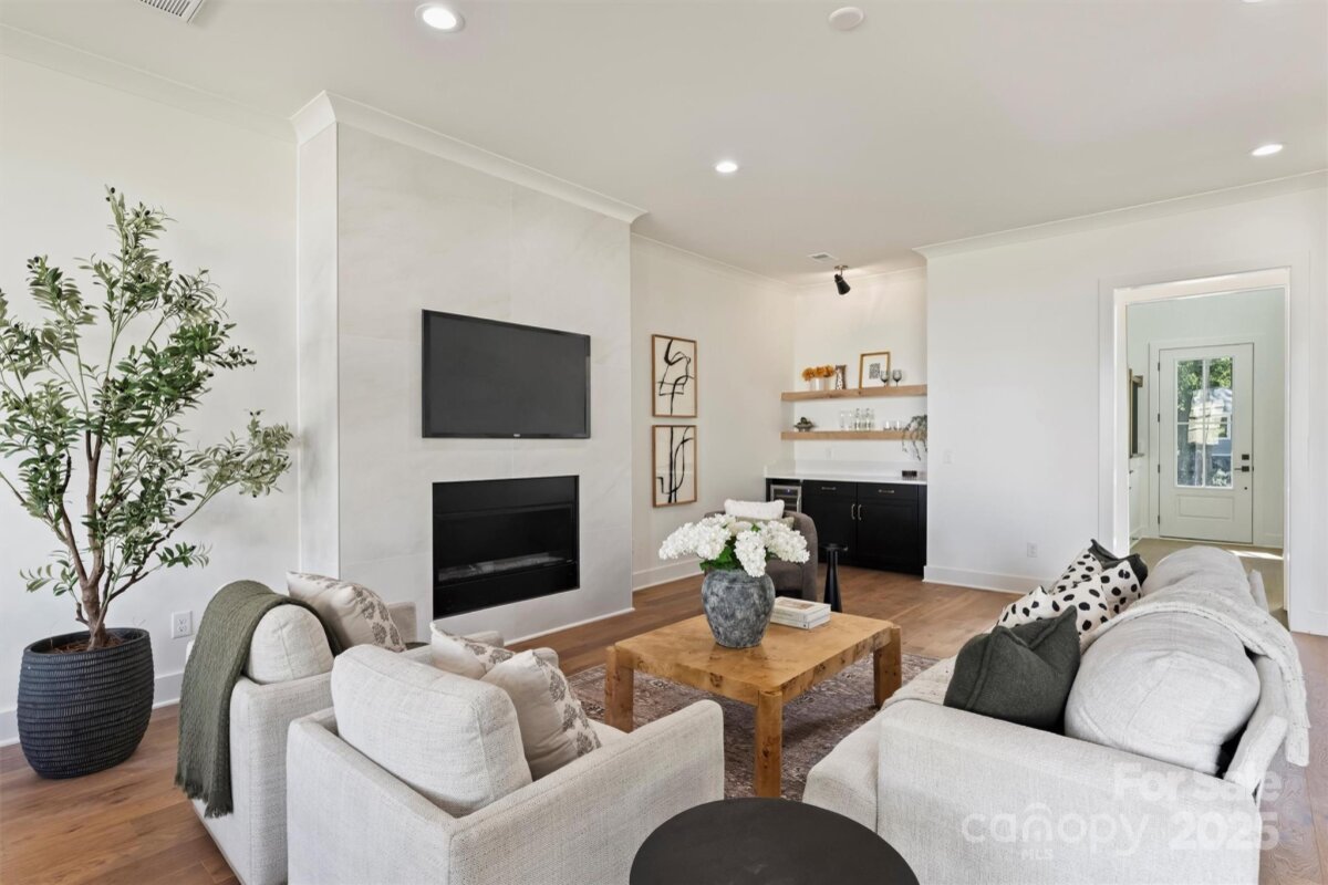 This thoughtfully designed two-story home offers just over 2,850 square feet of refined living space. Newly constructed, this never lived in luxury duet features a soaring 20-foot foyer and 10-foot ceilings throughout that create an open and inviting atmosphere. At the heart of this home, you’ll find a spacious great room that seamlessly connects the living area, dining space, and chef’s kitchen—complete with a large island that seats five, walk-in pantry, dry bar/wine refrigerator combo, and gas range. Timeless cabinetry in shades of black and dark wood stain are complemented by champagne bronze fixtures, while the soft gray cabinets pair with black, blending classic character with modern elegance. The main level owner’s suite feels of a private retreat featuring dual vanities, soaking tub, large glass shower, and custom built-in closet. Additional main floor highlights include a powder bath, functional drop zone, and a two-car garage with windows & exterior access from the fully fenced side & back yards. Covered front and rear porches extend the living space outdoors, perfect for relaxing or entertaining. Upstairs, a generous landing leads to three spacious bedrooms—one serving as a secondary primary suite with six windows and a private en-suite bath. A dedicated laundry room with upper and lower cabinetry, a utility sink, and additional storage ensures convenience, while a flexible office/exercise/catchall space provides room to grow and adapt. Balancing modern luxury with everyday livability, this home delivers an exceptional duet experience designed for those who appreciate style, space, and thoughtful design. Drive to the center of NoDa in 3 minutes, Plaza-Midwood in 7, Elizabeth in 10, and Uptown in 14. Tucked away on a quiet street with cul-de-sac like corner.