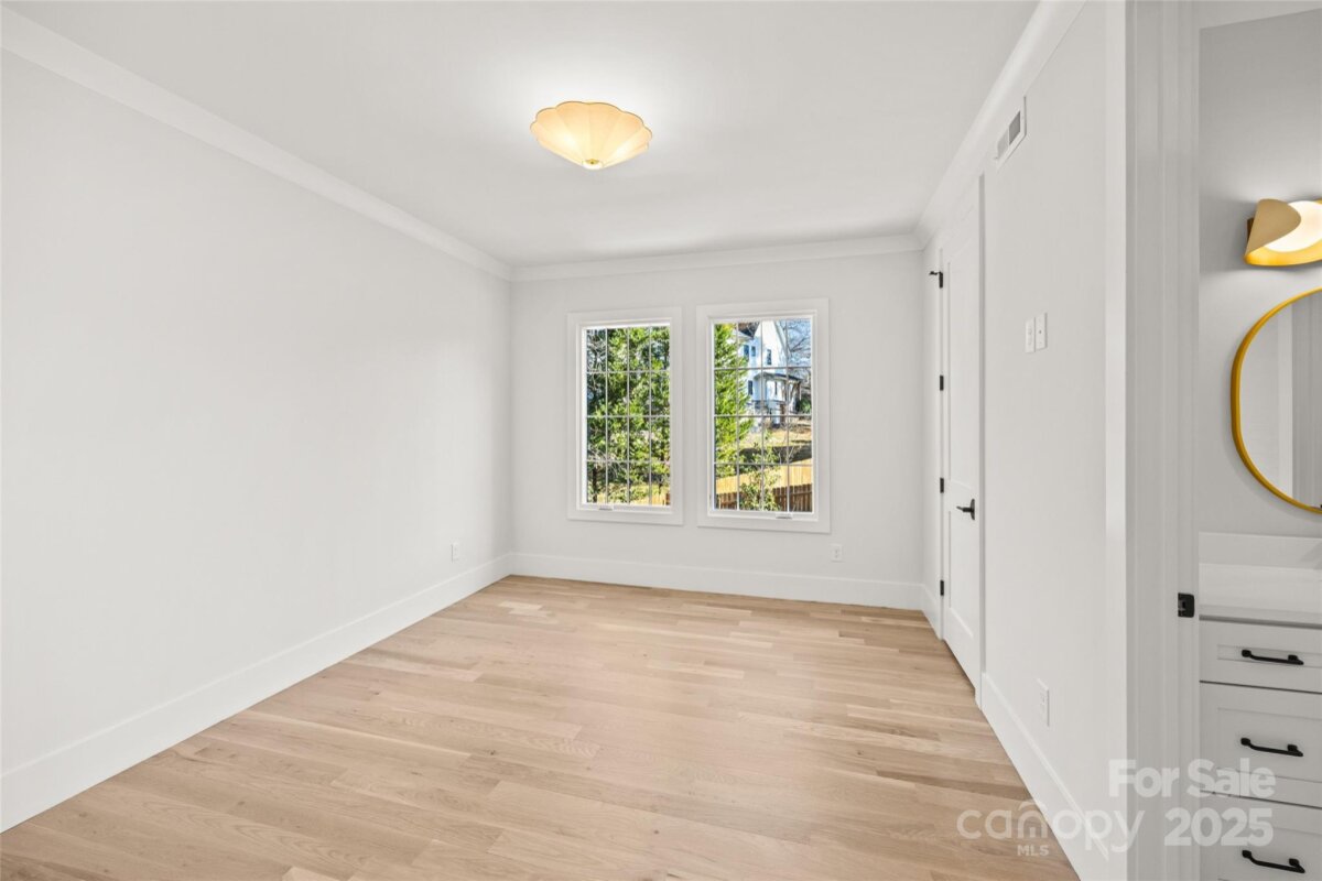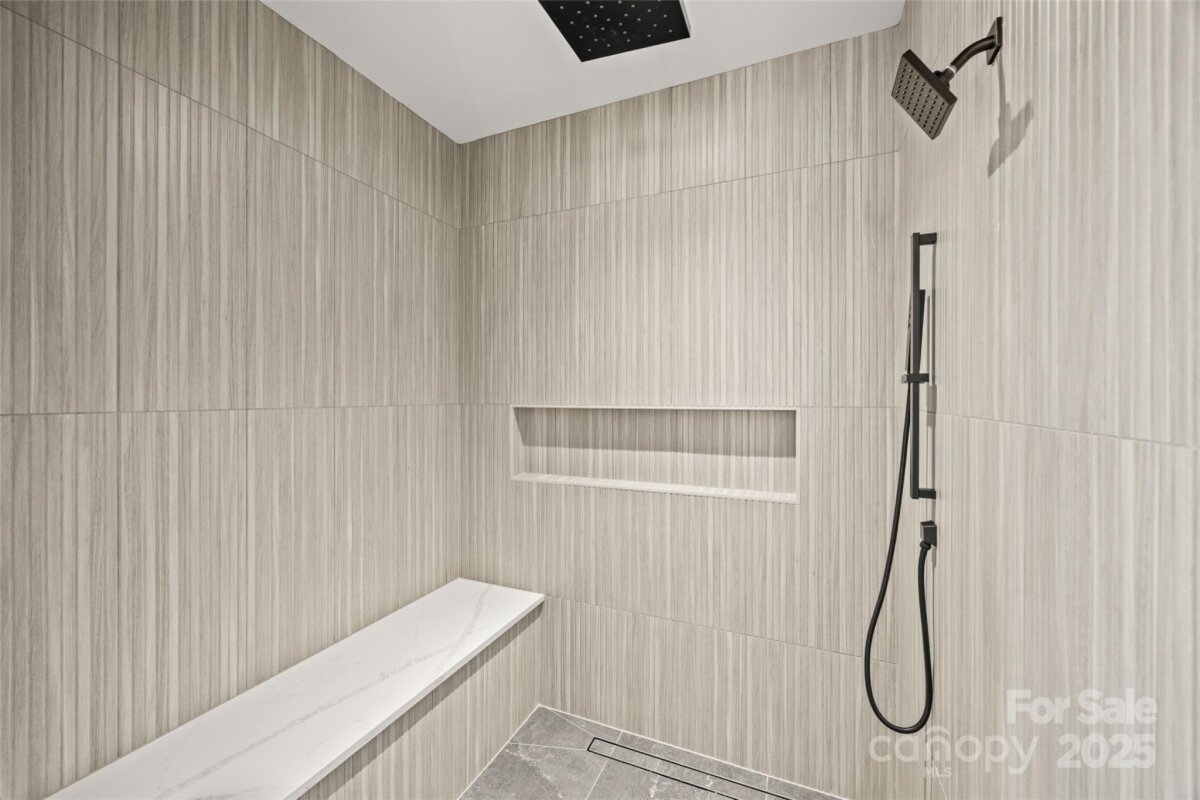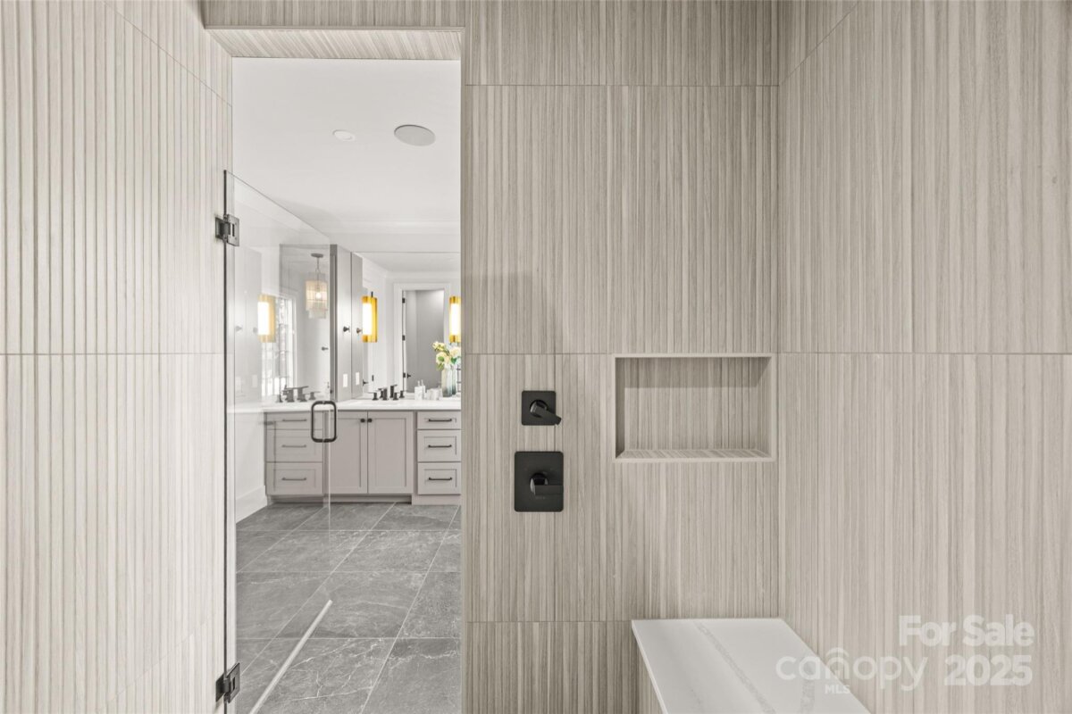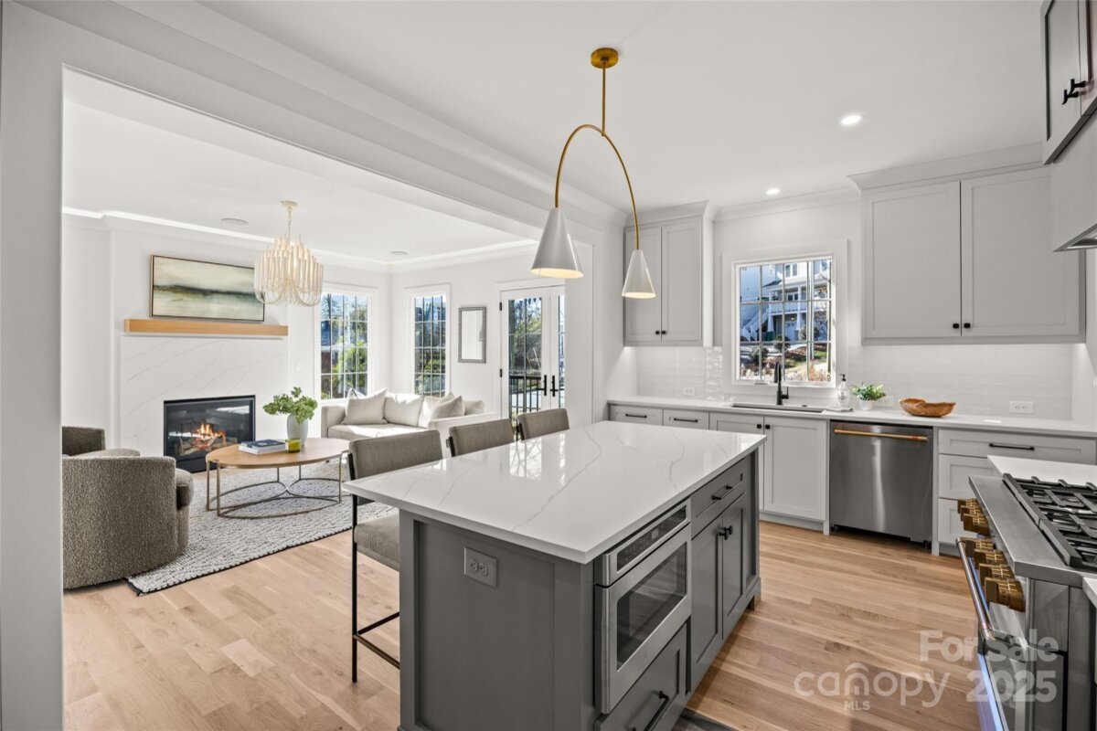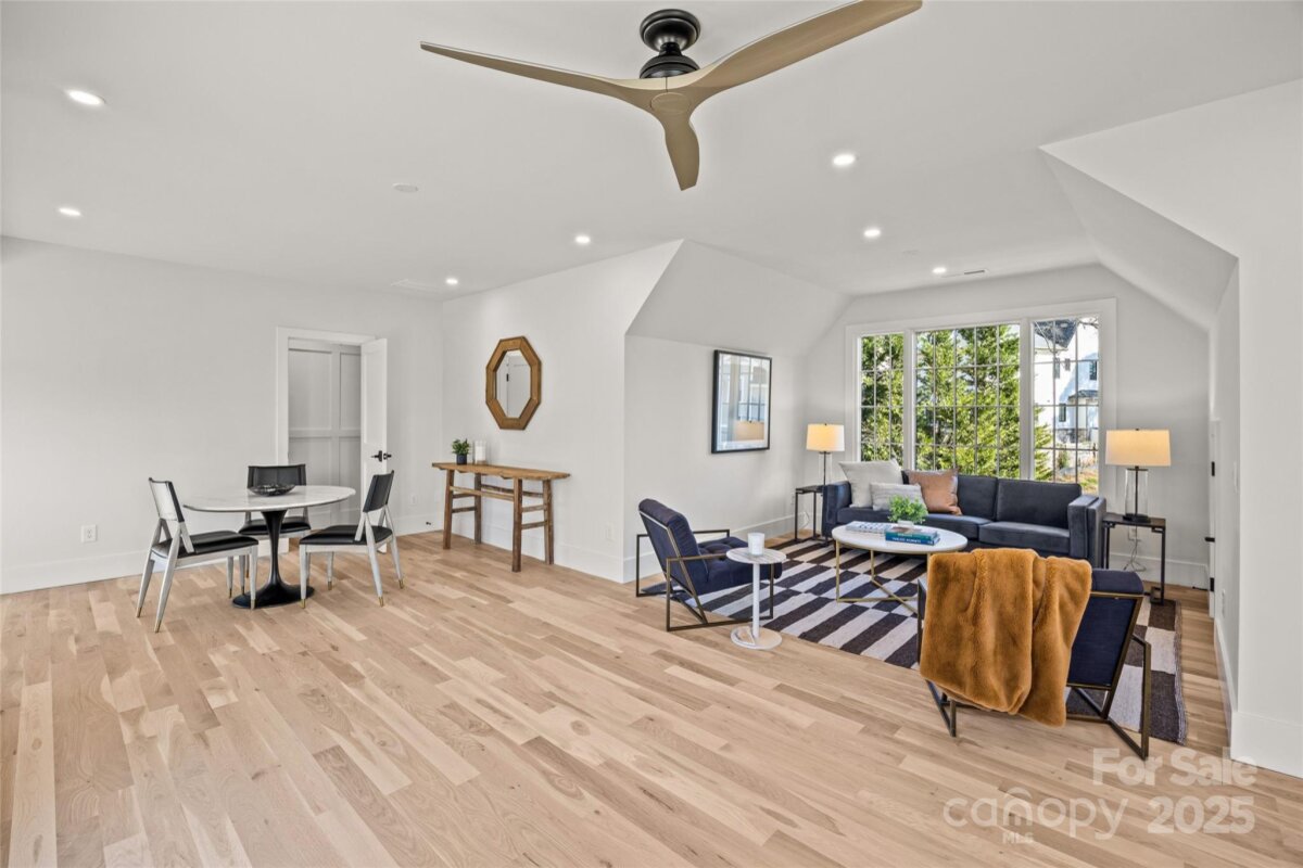 An extraordinary custom designed residence showcasing distinctive style with ample space for both relaxation and entertainment. From the double height chandeliered staircase windows to the carefully considered living spaces, this home offers a true sanctuary in the city. Open living area features soft, elegant design palette, fully vented fireplace, cove-lighted crown moulding, gorgeous lighting and Juliet balcony, anchored by the tasteful chef's kitchen. Outfitted with quartz counters, professional GE Cafe stainless appliances and custom hand-built full wood cabinets. 36†Range with integrated hood, wifi-connect built-in wide refrigerator with ice-maker, and island with microwave drawer; mini-pantry. Main level office/formal dining/lounge with lighted pocket doors. The luxurious Primary Suite offers a dramatic sense of space. A serene retreat w/spa-inspired en-suite bath, curbless shower, soaking tub, double vanity, ceiling speakers and private toilet stall. Large walk-in hand-built closet. Every spacious bedroom has a full bath. 3rd level loft suite offers flexible living options from media room, entertainment space, or as a fourth bedroom with full bath. Clever ‘Secret Room’ behind standard closet can also be an extended walk-in closet or storage space. Top floor is where the party happens as you unwind outside on your large hardwood, 3rd level terrace, perfectly suited for sophisticated entertaining with 7 ft serving window via kitchenette, quartz exterior bar top, outdoor TV and A/V connections & fire pit with gas hookup. This brand new duet home boasts a comprehensive list of exceptional luxury amenities, incl elegant multi-paned full wood/aluminum clad windows single-sourced from forest to fabrication in USA, HERO Energy compliant, white oak flooring, 'secret room', mud/drop zone, upgraded A/V package, video doorbell, fully insulated crawl space, stunning 3rd level wood terrace, architectural and metal roof, and large 2-car attached garage. Nestled within a quiet cul-de-sac, you're never more than a few minutes from all that beautiful Plaza-Midwood has to offer. Walk to Central Ave restaurants/venues, or ride your bike to the greenway. Close to the Blue Line, freeways and Uptown