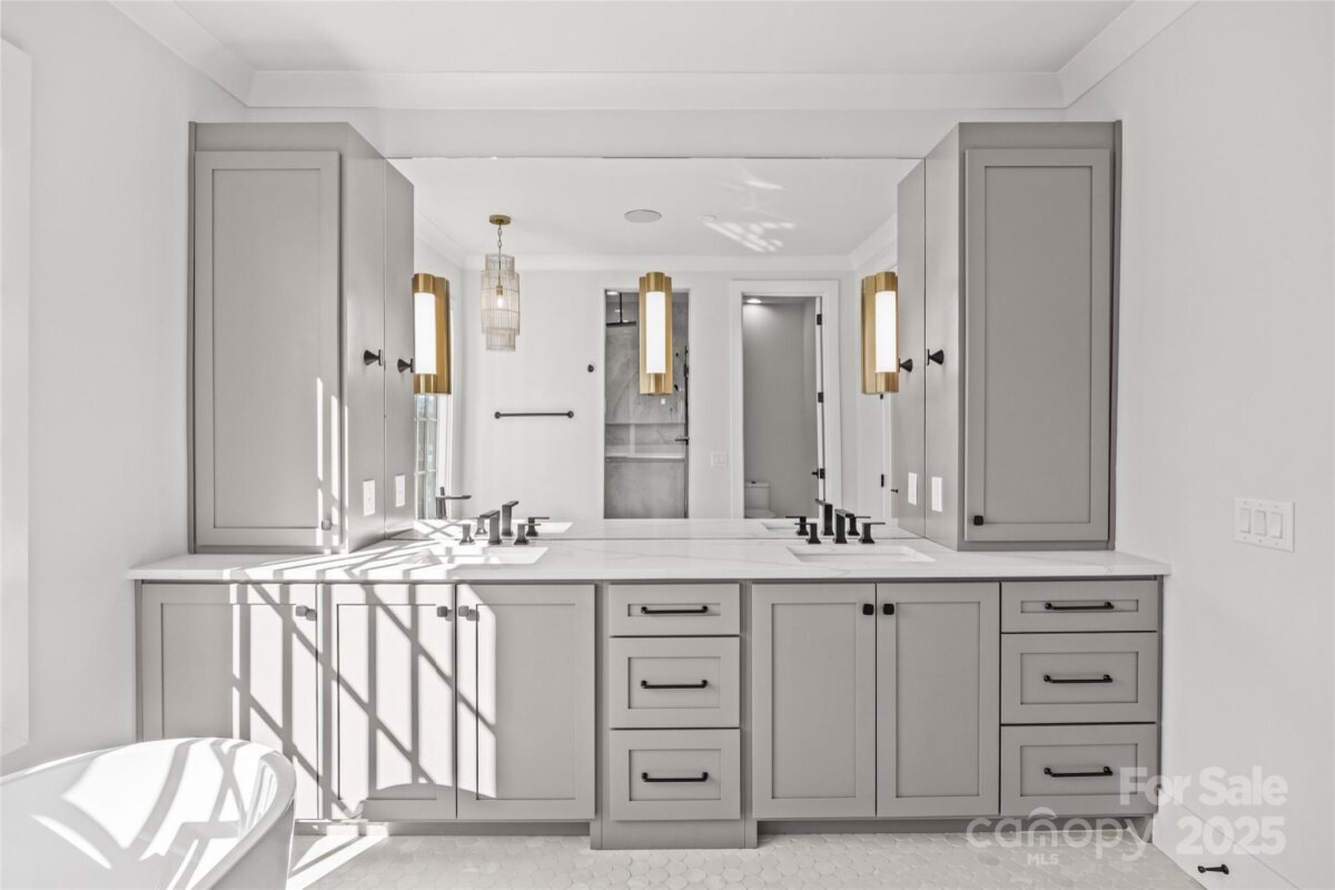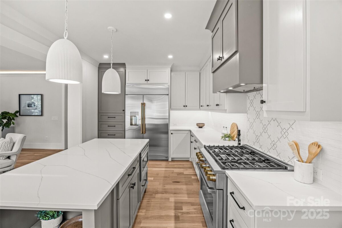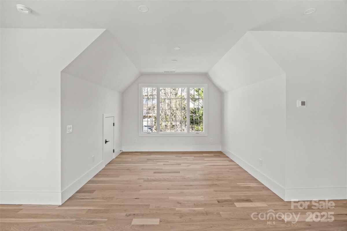 An extraordinary custom designed residence showcasing distinctive style with ample space for both relaxation and entertainment. From the double height chandeliered staircase windows to the carefully considered living spaces, this home offers a true sanctuary in the city. Open living area features soft, elegant design palette, fully vented fireplace, cove-lighted crown moulding, gorgeous lighting and Juliet balcony, anchored by the tasteful chef's kitchen. Outfitted with quartz counters, professional GE Cafe stainless appliances and custom hand-built full wood cabinets. 36†Range with integrated hood, wifi-connect built-in wide refrigerator with ice-maker, and island with microwave drawer; mini-pantry. Main level office/formal dining/lounge with lighted pocket doors. The luxurious Primary Suite offers a dramatic sense of space. A serene retreat w/ spa-inspired en-suite bath, curbless shower, soaking tub, double vanity and private toilet stall. Large walk-in hand-built closet. Every spacious bedroom has a full bath. 3rd level loft suite offers flexible living options from media room, entertainment space, or as a fourth bedroom with full bath. Clever ‘Secret Room’ behind standard closet can also be an extended walk-in closet or storage space. Top floor is where the party happens as you unwind outside on your large hardwood, 3rd level terrace, perfectly suited for sophisticated entertaining with 7 ft serving window via kitchenette, quartz exterior bar top, outdoor TV and A/V connections & fire pit with gas hookup. This brand new duet home boasts a comprehensive list of exceptional luxury amenities, incl elegant multi-paned full wood/aluminum clad windows single-sourced from forest to fabrication in USA, HERO Energy compliant, white oak flooring, 'secret room', mud/drop zone, upgraded A/V package, video doorbell, fully insulated crawl space, stunning 3rd level wood terrace, architectural and metal roof, and large 2-car attached garage. Nestled within a quiet cul-de-sac, you're never more than a few minutes from all that beautiful Plaza-Midwood has to offer. Walk to Central Ave restaurants/venues, or ride your bike to the greenway. Close to the Blue Line, freeways and Uptown