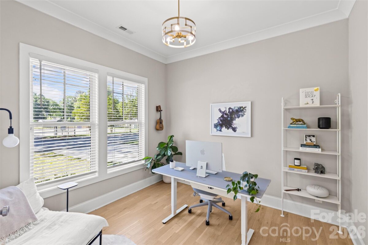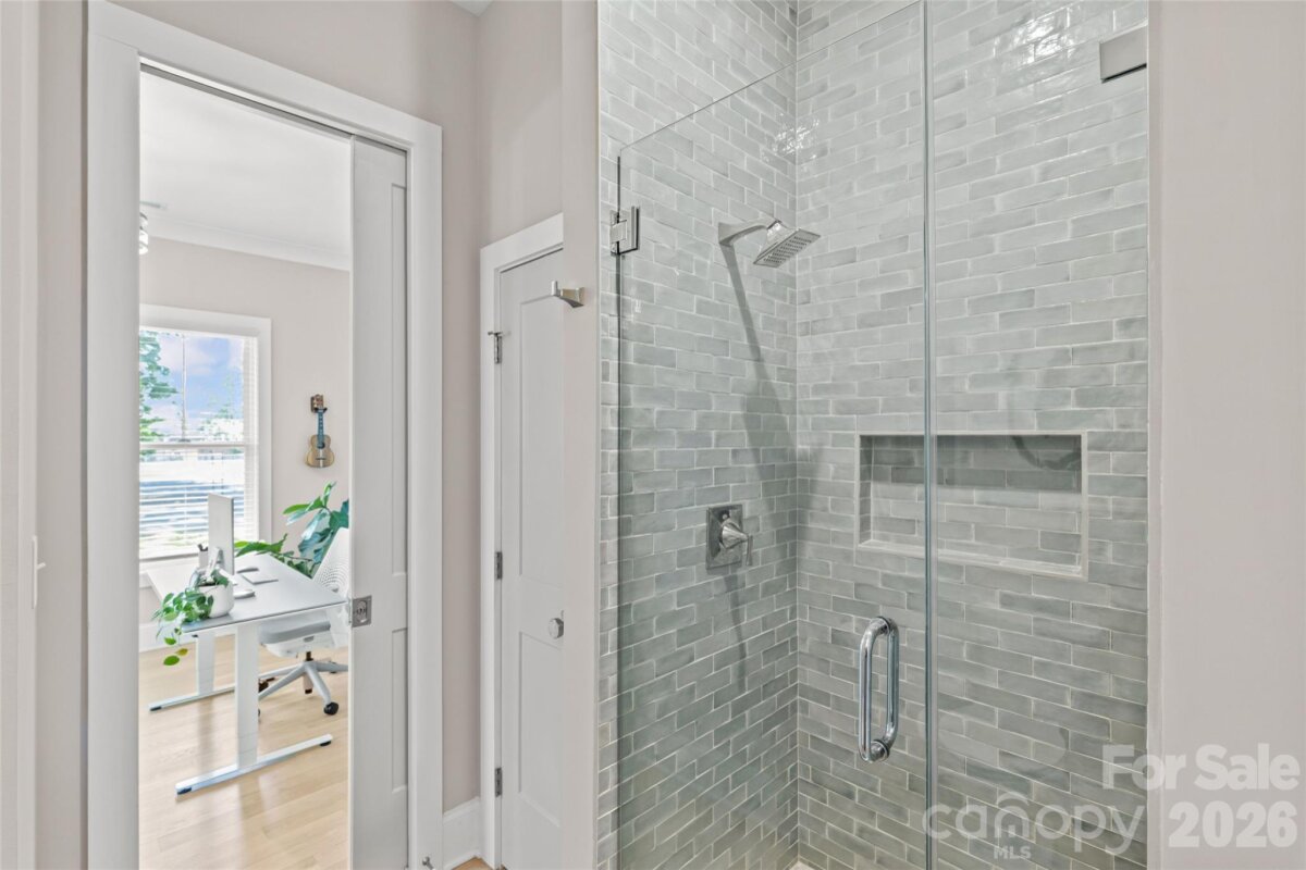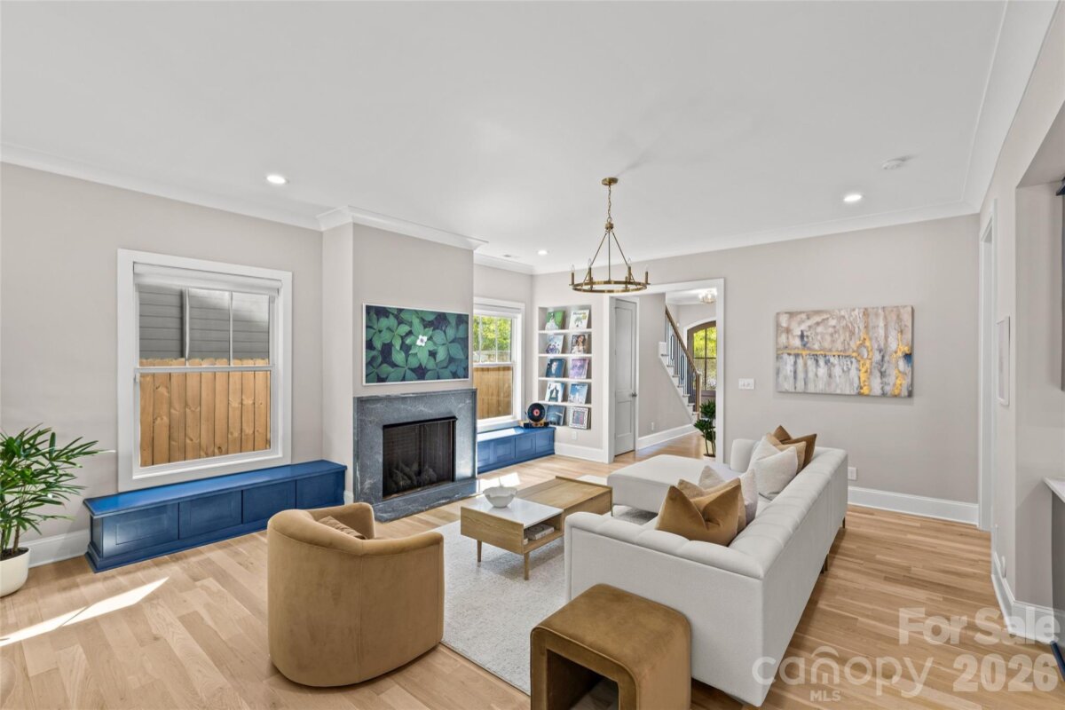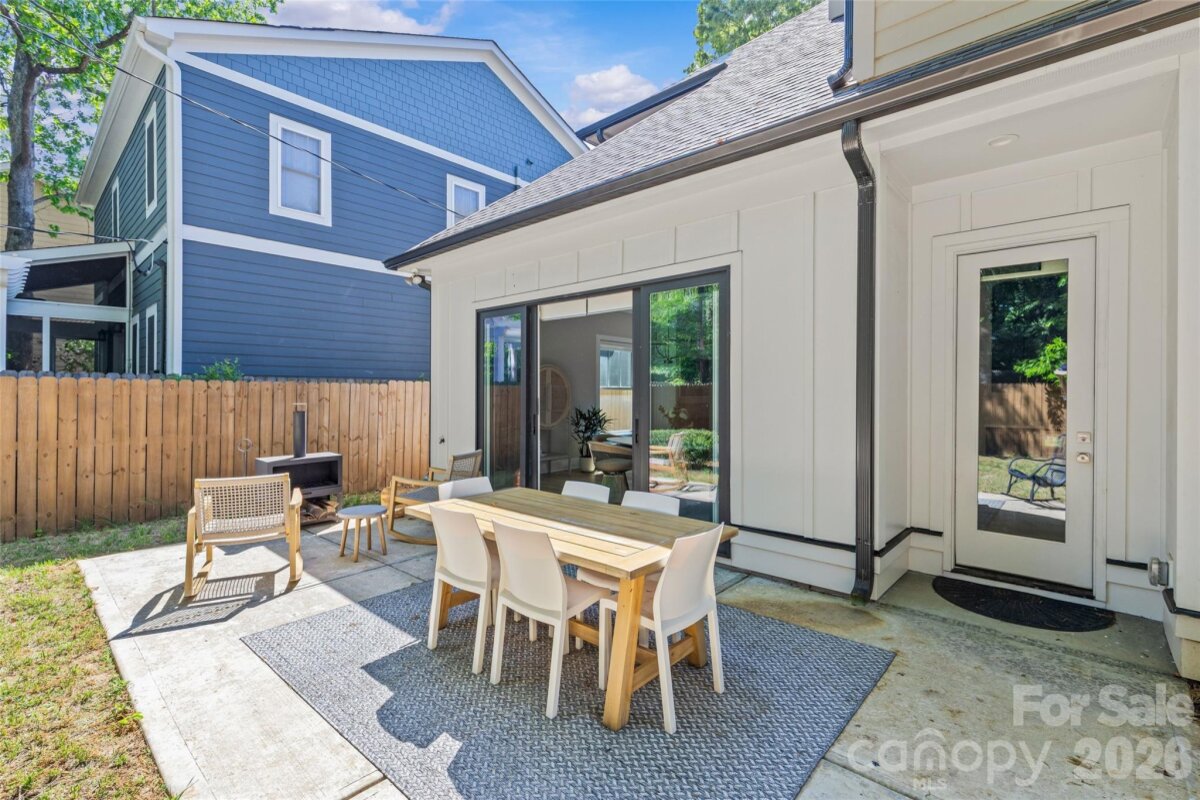 Welcome to 3505 Oakwood Ave, a gorgeous 2023-built home in the highly desirable NoDa neighborhood—move-in ready from day one, and full of upgrades. Upon entry, you'll love the seamless flow between the living, dining, and kitchen areas. The kitchen shines with a huge quartz island, JennAir appliances, and upgraded cabinetry, while smart lighting and motorized shades add everyday ease. Completing the first floor living space is a flexible office or bedroom with attached full bathroom. Continue outside to a charming patio perfectly sized for relaxing or entertaining. Upstairs offers a gorgeous primary suite with a stunning California Custom closet, as well as additional built-in closet storage, and a spa-inspired ensuite. There are two more bedrooms, a full bathroom, and a versatile flex room. The garage is finished with epoxy floors, built-in storage, and universal EV charging. Additional upgrades include whole-house water filtration, integrated security, and motorized blackout shades — all done for you. Minutes from NoDa's restaurants, breweries, and shops with easy access to Plaza Midwood, Uptown and more!
