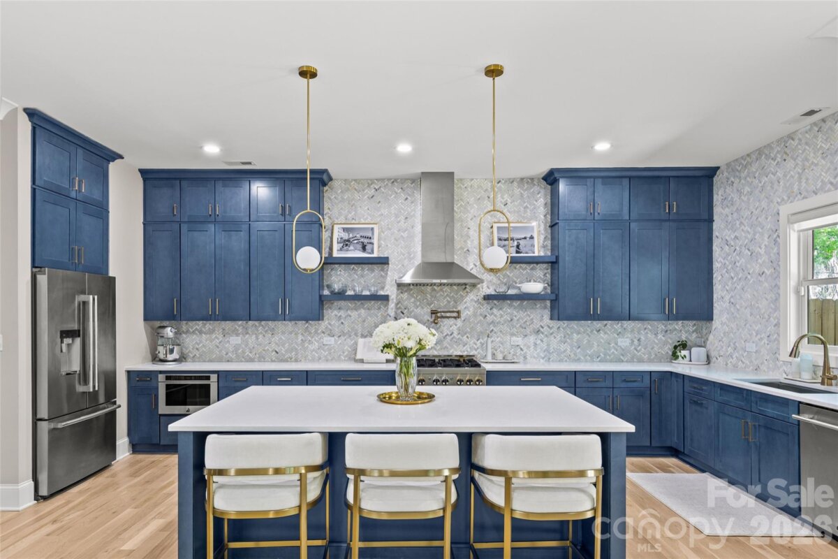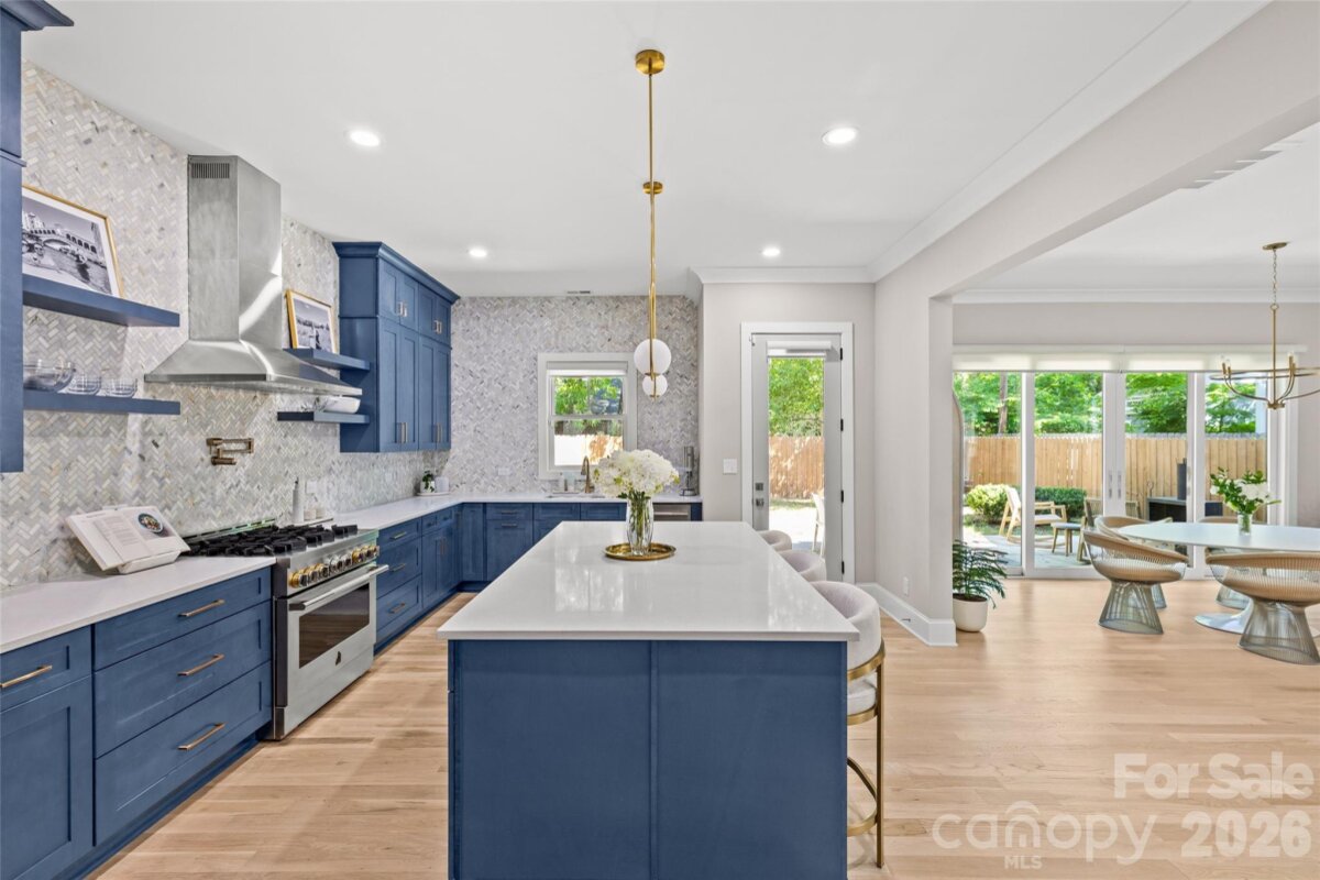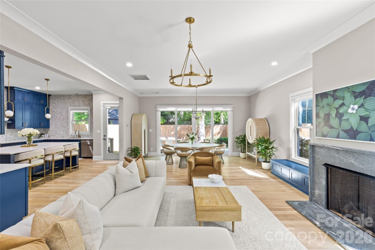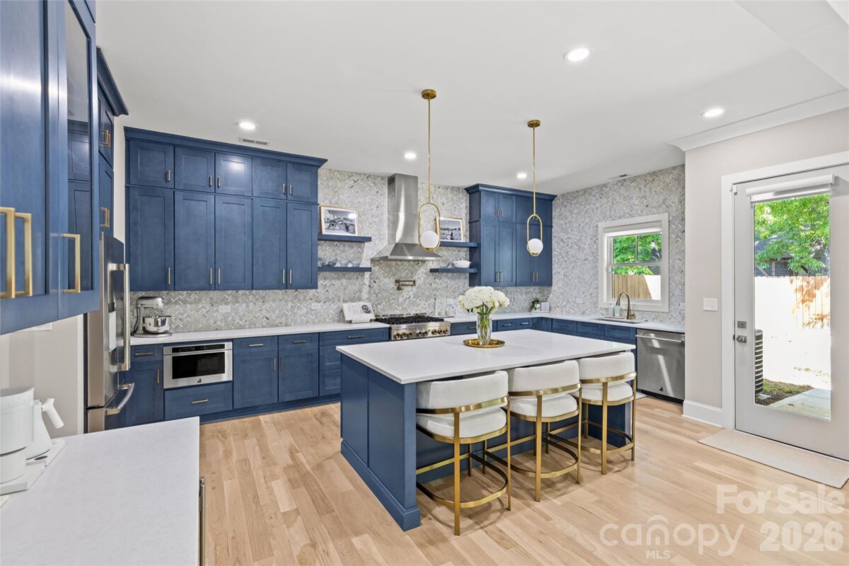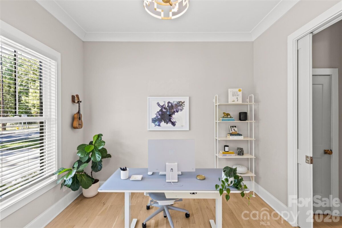 Welcome to 3505 Oakwood Ave, a gorgeous 2023-built home in the highly desirable NoDa neighborhood—move-in ready from day one, and full of upgrades. Upon entry, you'll love the seamless flow between the living, dining, and kitchen areas. The kitchen shines with a huge quartz island, JennAir appliances, and upgraded cabinetry, while smart lighting and motorized shades add everyday ease. Completing the first floor living space is a flexible office or bedroom with attached full bathroom. Continue outside to a charming patio perfectly sized for relaxing or entertaining. Upstairs offers a gorgeous primary suite with a stunning California Custom closet, as well as additional built-in closet storage, and a spa-inspired ensuite. There are two more bedrooms, a full bathroom, and a versatile flex room. The garage is finished with epoxy floors, built-in storage, and universal EV charging. Additional upgrades include whole-house water filtration, integrated security, and motorized blackout shades — all done for you. Minutes from NoDa's restaurants, breweries, and shops with easy access to Plaza Midwood, Uptown and more!