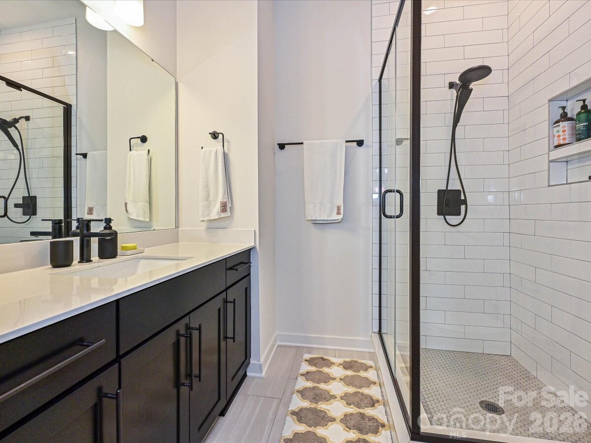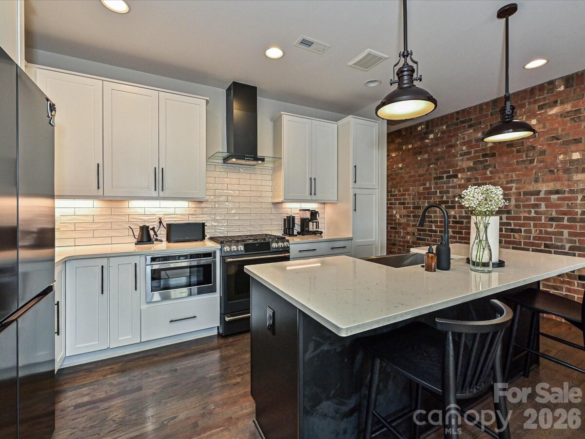 Welcome to Highland Park — a brick brownstone townhome in the heart of NoDa. Recently built, this 4-bedroom, 4.5-bath home delivers a sleek, modern interior that feels like it belongs in a design magazine. The main living area features a chef's kitchen anchored by an oversized quartz island, custom cabinetry with soft-close hardware, and bold black stainless appliance suite with gas range, Truly move-in ready with hardwood floors, modern black casement windows, designer tile in every bath, and metal railings throughout. The home has a flexible layout with all bedrooms having en-suite bathrooms attached. Off the main living you'll find a private balcony with westerly exposure. The rear access garage has epoxy floors and plenty of storage rounding out the unit.