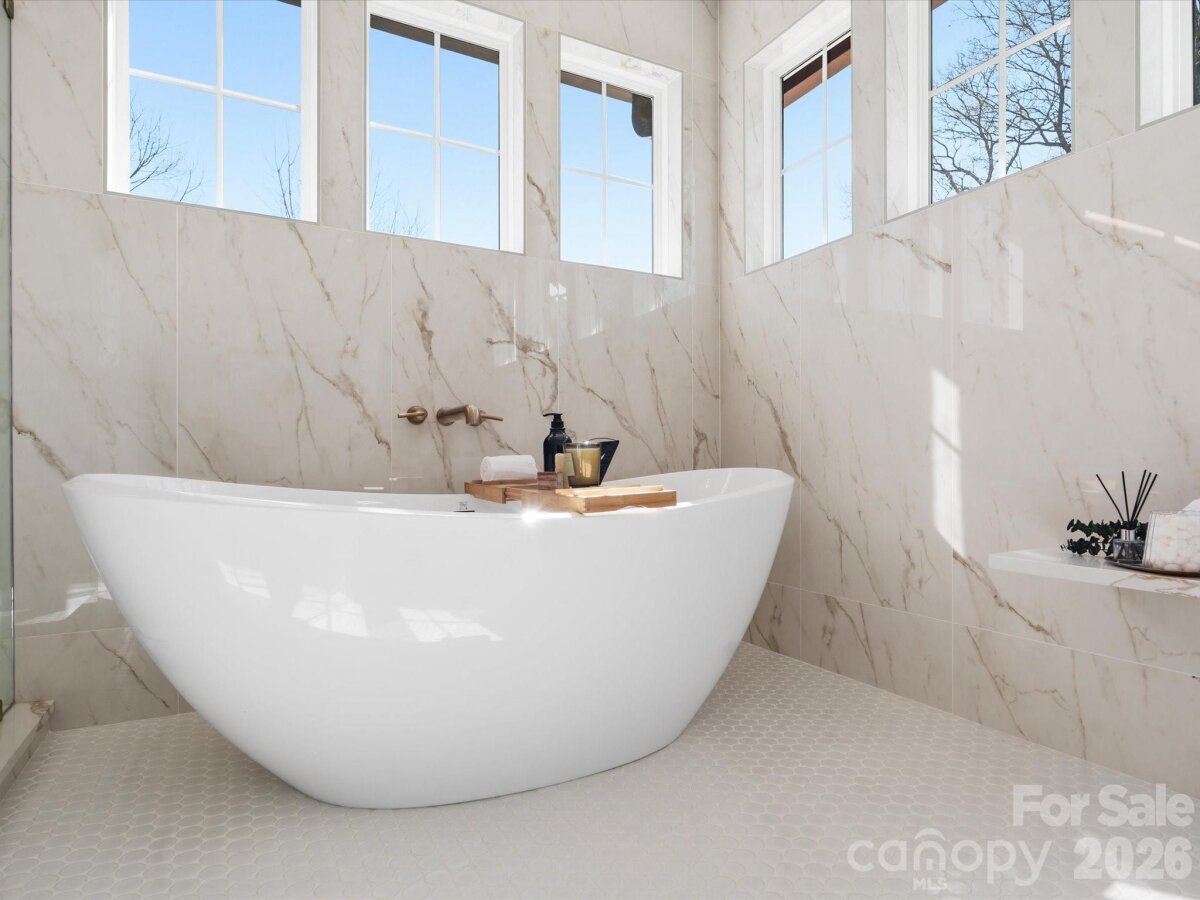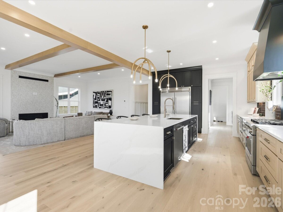 Impeccable and chic, this new-build Charlotte residence is the epitome of modern elegance! Upon entry into your 2 story grand foyer, you will discover a sophisticated 4-bedroom, 4-bath interior complete with tall ceilings/doors and custom millwork throughout. Undoubtedly The 1st thing you will notice in the drop zone is your complete doggy day spa. Show off your skills in the entertainer’s kitchen, featuring a massive multi-seater quartz waterfall island, high-end stainless steel appliances, custom range hood, and beverage fridge. Off the main kitchen your skullery and walk in pantry hide all of your necessities including a stand-alone icemaker, stunning leathered granite and custom built open shelving. In the light and bright main living area you will love the custom white oak beam ceilings, gorgeous 7.25 inch white oak engineered hardwood floors that are throughout the whole house, accordion style sliding doors to your covered screened porch which allows a seamless flow from the warmth of the living room’s sleek linear gas fireplace to the chandelier-lit dining area. Among the comfortable bedrooms, the primary suite steals the show with a sun-soaked soaking tub area, breathtaking custom walk-in closet, and spa-like ensuite showcasing a rainfall shower with city skyline views. With a screened-in porch and 8 foot tall fully fenced yard, you’ll have plenty of privacy and space for outdoor celebrations while enjoying the Charlotte skyline views. Premium perks include a versatile office/BR with its own full bath, loft area perfect for a secondary office space or play area, and an attached 2-car garage with epoxy floors. Come take a tour of this Iconic Builders home before it’s too late!