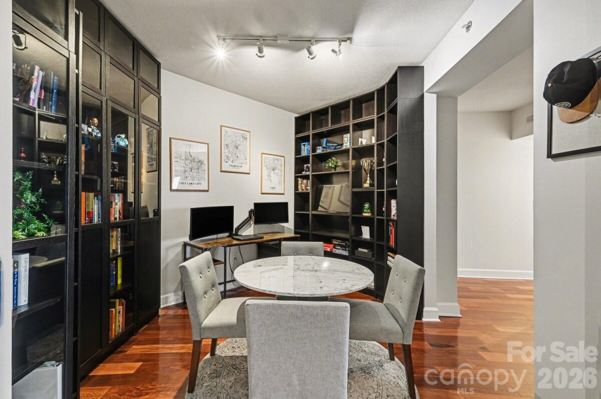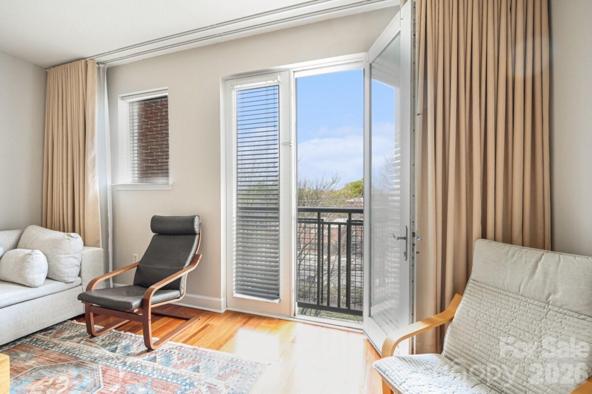 Sophisticated Urban Living in the Heart of Dilworth! Nestled between Scott Avenue and Kenilworth Avenue in the heart of Dilworth, a condo of this size doesn’t go up for sale often. This 2-bedroom, 2-bathroom front-facing mid rise condo spans 1,610 square feet (one of three units – the largest in the complex), delivering exceptional comfort in an unbeatable location. The home features all hardwood flooring and updated appliances. Soaring 9-foot ceilings and an open floor plan create a bright, airy atmosphere. Master bedroom has a large walk in closet and master bathroom boasts two sinks, garden tub and shower. A versatile flex space off the main living area serves perfectly as a library/home office, dining room, or study. The living room opens to a private Juliette balcony overlooking East Boulevard. Two dedicated private garage parking spaces complete the package. Building amenities include a fitness center and a rooftop terrace with gas grills — perfect for entertaining or watching Charlotte's skyline. Steps away from 20+ restaurants, two grocery stores, Freedom Park, Atrium Health, and quick access to Uptown. This is Dilworth living at its finest.