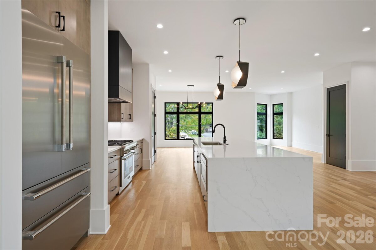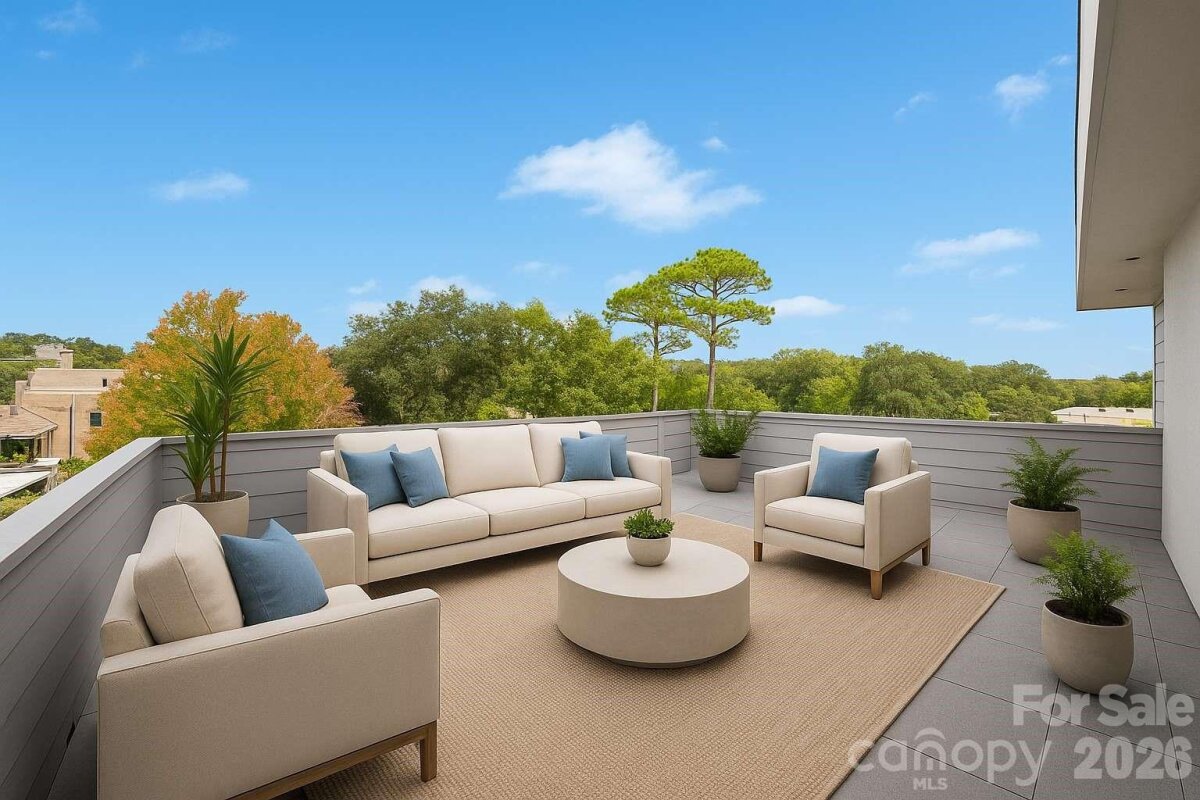 Brand-new modern 4-story townhome in coveted Myers Park, walkable to Dilworth shopping/dining, East Blvd & Sugar Creek Greenway. Spanning 4,022 sqft., this residence features 10’ ceilings, 8’ doors, blonde white oak hardwoods, and a private elevator to all levels, including the expansive rooftop terrace. The chef’s kitchen boasts custom cabinetry, Thermador appliances, waterfall-edge island, gas range/pot filler & French-door refrigerator. The primary suite offers a spa-like bath with soaking tub, rain shower, sleek tile, water closet & custom walk-in closet. Each ensuite bedroom is finished with custom tile. The versatile third level includes a full bath and open living space that is roughed in for an entertainment bar, and separate room ideal for an office, lounge, or 4th bedroom. Additional highlights include a laundry room with sink & side-by-side space and abundant natural light. A rare opportunity to own a luxury new construction home in Charlotte’s premier neighborhood.