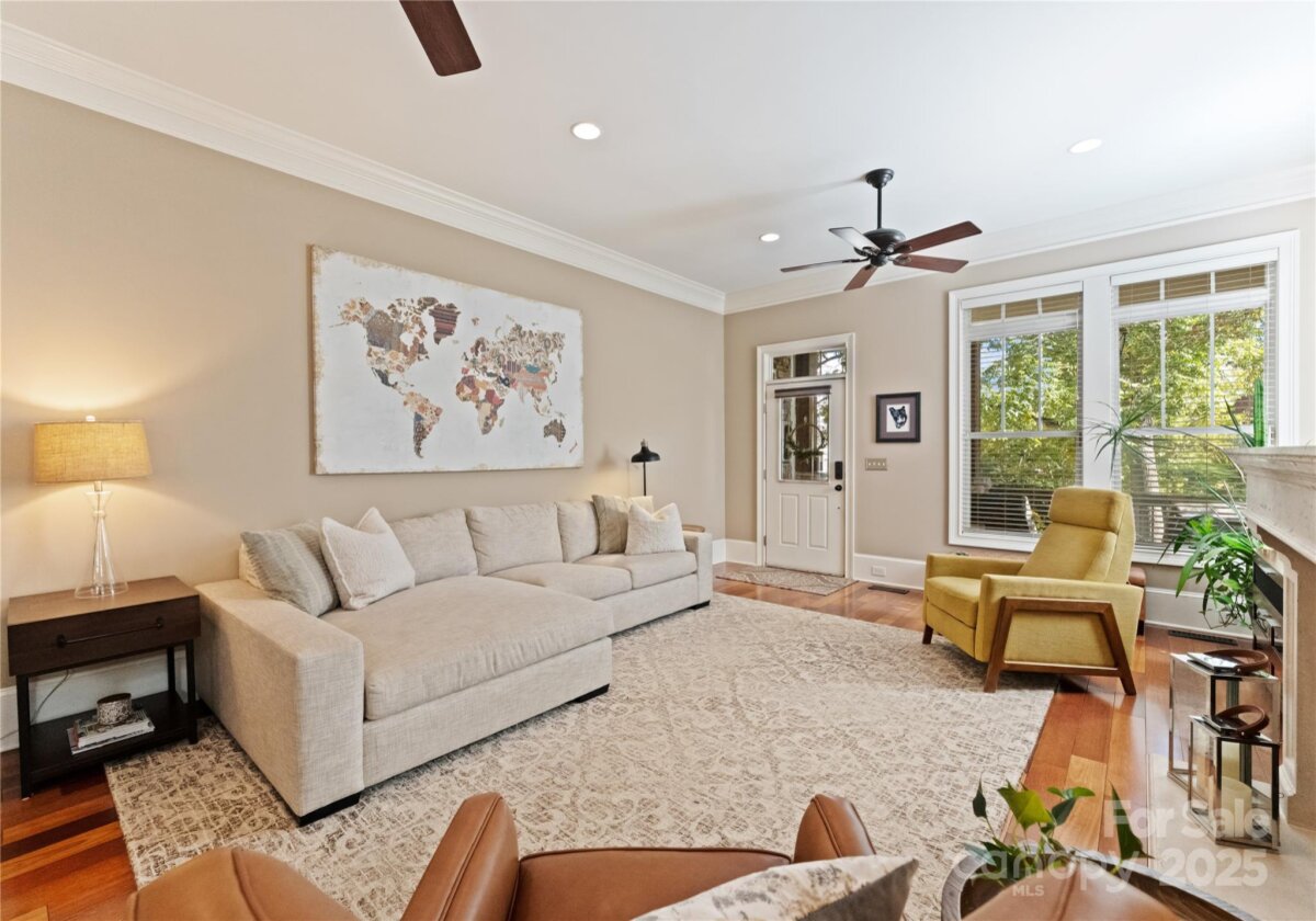 Perfectly situated along one of Dilworth’s most walkable streets, this left-side residence of a thoughtfully designed duplex blends classic curb appeal with elevated, everyday comfort. From the moment you arrive, the inviting front porch welcomes you home—a signature feature of this unit. Inside, the open and airy layout offers an easy flow from living, dining, to kitchen, creating a bright and connected space for entertaining or quiet evenings by the stunning fireplace. The beautifully updated kitchen (2025) features quartz countertops, a gas cooktop, and timeless finishes designed for both style and function. With a new roof (2025) and a dedicated one-car garage, this home is move-in ready! Just steps from Dilworth’s favorite restaurants, boutiques, and coffee shops, 1707 Lombardy Circle delivers the best of city living—modern updates and undeniable neighborhood charm.