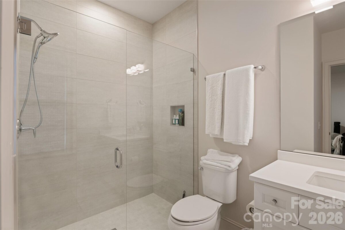 Nestled in the highly sought-after Lombardy Terrace community, this luxury condo built by Simonini, offers an exceptional blend of comfort and elegance. Thoughtfully positioned at the back of the community for added privacy and tranquility, this home showcases high-end finishes and hardwood floors throughout. The main level features an open-concept kitchen, complete with premium appliances and a spacious island—perfect for entertaining. Spacious dining and living area with gas fire place, large windows and balcony. A versatile lower-level suite provides an ideal space for guests or a second primary bedroom. Upstairs, the primary suite boasts a stunning bathroom and dual walk-in closets. A large secondary bedroom includes its own en suite bath. Upper level also has laundry room with brand new washer and dryer installed. This property also has a spacious two-car garage, which only a few in the community have. Spacious separate climate controlled storage unit located in the back of the community. Enjoy being close to Freedom Park, miles of scenic greenway trails, and the vibrant dining, shopping, and lifestyle offerings of East Boulevard, South End, and Uptown.
