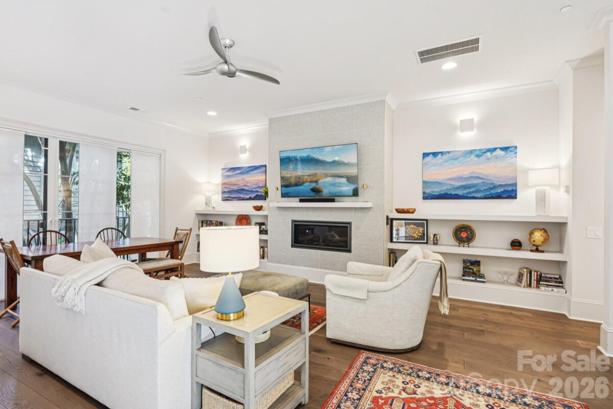 Simonini-built luxury condo in the heart of Dilworth, offering an exceptional blend of high-end finishes, thoughtful design, and unmatched walkability. Located in the intimate Lombardy Terrace community, this residence lives like a townhome with the ease of condo ownership. The main living level features hardwood floors, a striking gas fireplace, and an open-concept kitchen with a large island, abundant cabinetry, premium appliances, and elegant finishes—ideal for everyday living and entertaining. Just off the main living space, a charming terrace evokes a European feel and extends the living area outdoors. The flexible three-level layout includes a spacious lower-level suite perfect for guests or a second primary bedroom, featuring excellent closet space and natural light. Upstairs, the primary suite offers a spa-inspired bath and a custom walk-in closet with tailored shelving. Built-in storage is thoughtfully integrated throughout the home, maximizing both function and style. A one-car garage plus street parking and a rare HOA that includes interior insurance enhance the home’s turnkey appeal. Enjoy immediate access to Freedom Park, miles of greenways, East Boulevard dining, coffee shops, boutiques, South End, and Uptown—right outside your door. A special opportunity to enjoy luxury living in one of Charlotte’s most desirable neighborhoods.