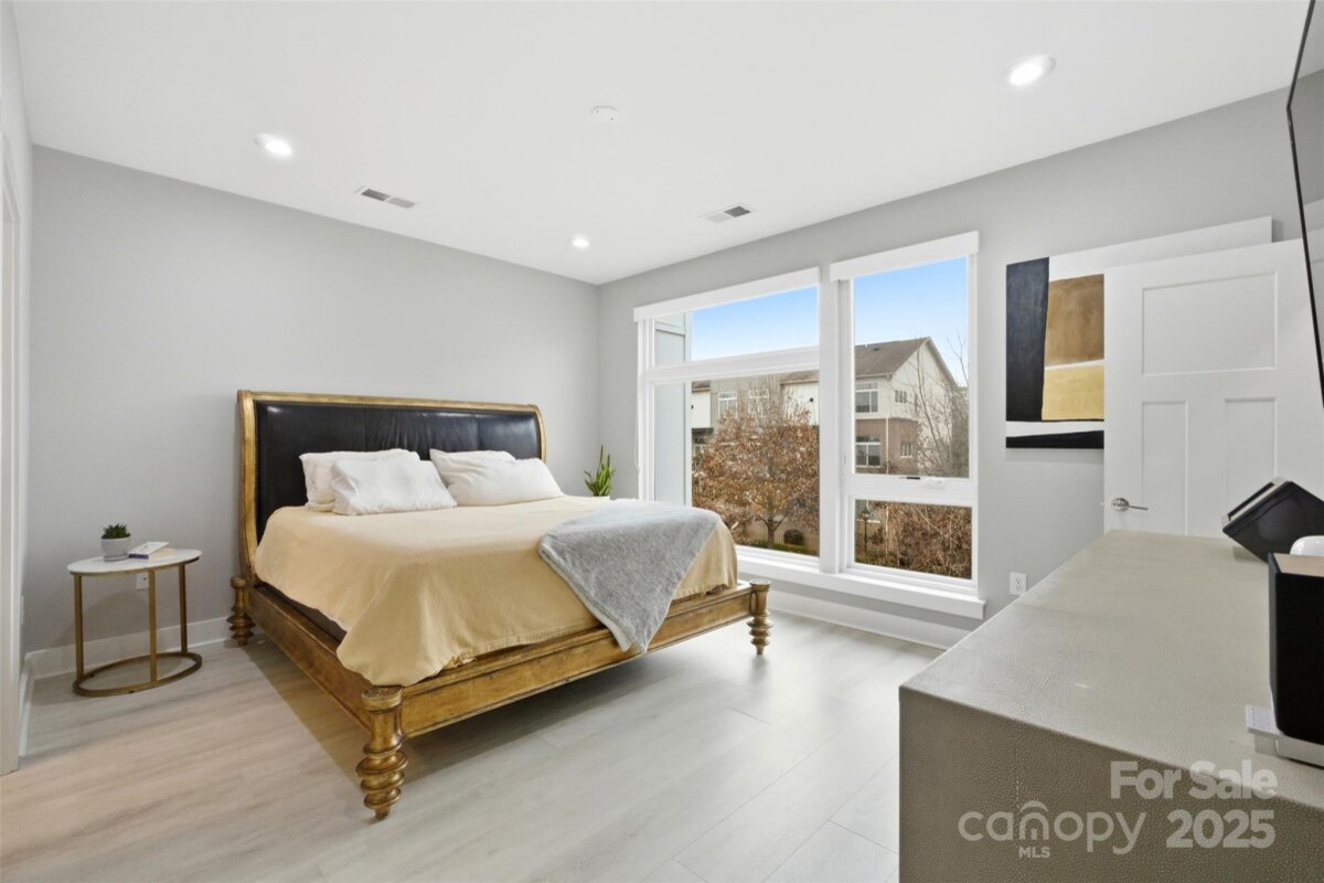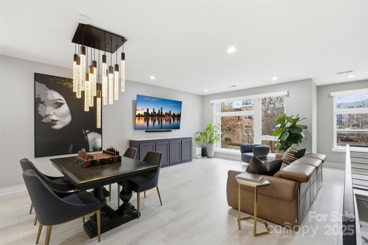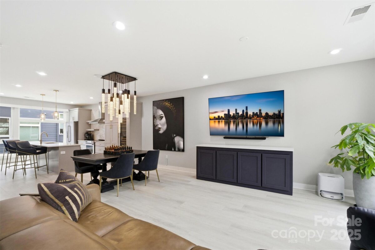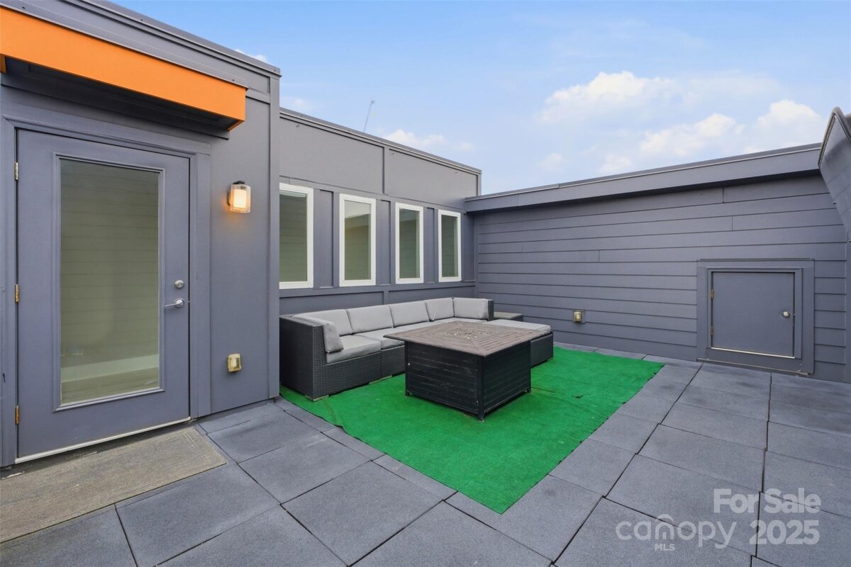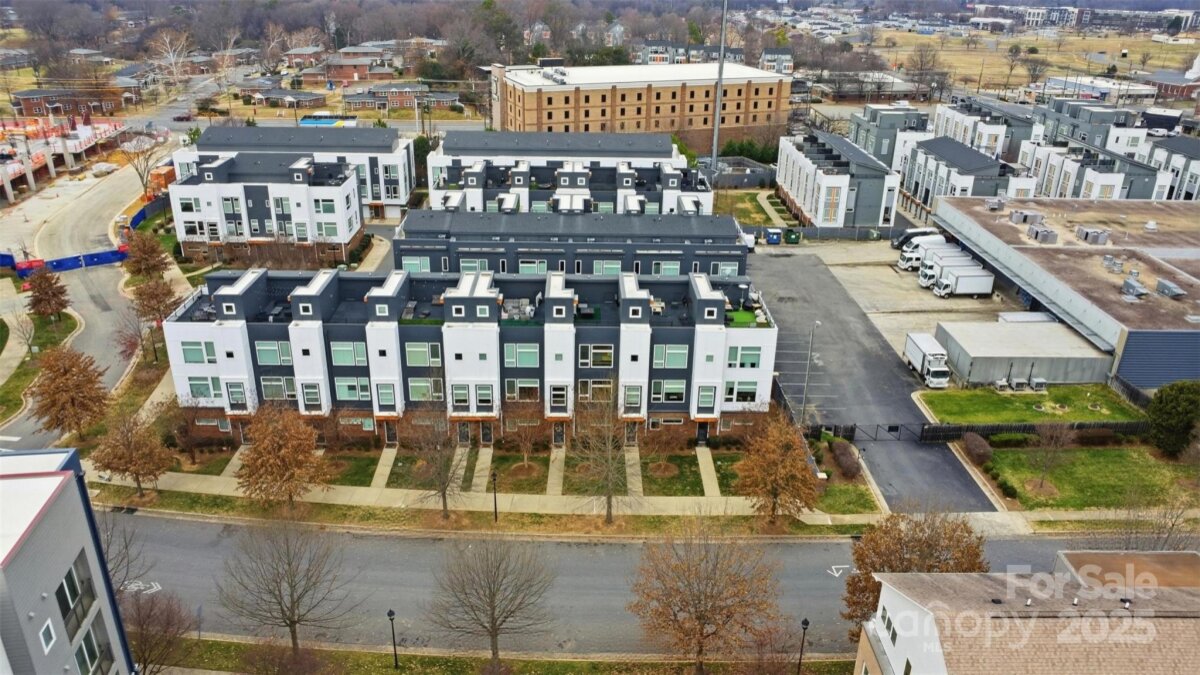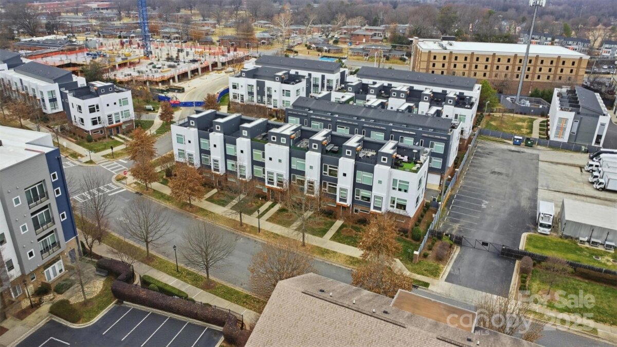 Experience refined urban living in this modern, luxurious 3 bedroom/3.5 bath townhome ideally positioned in the heart of sought-after South End. Thoughtfully designed across four levels, this residence is crowned by a private rooftop terrace, offering an exceptional setting for outdoor entertaining or quiet evenings above it all. Enjoy unparalleled convenience just blocks from South End’s acclaimed restaurants, breweries, boutiques, everyday conveniences and the Light Rail, offering effortless access to Uptown and beyond. The lower level welcomes you with a spacious tandem two-car garage, complete with a functional drop zone and a versatile bedroom or office, perfect for whatever your lifestyle needs! The main living level is an entertainer’s dream, featuring an open-concept layout anchored by a stunning chef’s kitchen with an oversized island, high-end stainless steel appliances, quartz countertops and abundant custom cabinetry. Seamlessly flowing into the dining and living areas, this space is ideal for hosting gatherings, pre-game entertaining or relaxed evenings at home. Upstairs, two generously sized bedrooms include a serene primary suite with a spa-inspired en-suite bath. The fourth level reveals a show-stopping rooftop terrace, offering an elevated outdoor living experience with sweeping views plus storage. Residents also enjoy access to a community dog park, completing this exceptional South End offering!