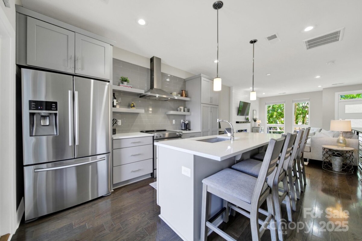 Located in the heart of South End, this stylish townhouse combines modern finishes with a prime location. Thoughtfully designed, it offers open living spaces, upgraded features, and immediate access to some of Charlotte’s most vibrant dining, shopping, and entertainment options. The main level showcases an open-concept layout with abundant natural light and high ceilings. A newly added fireplace with a custom shiplap feature wall creates a warm focal point in the living room, adding both charm and functionality. The kitchen is equipped with sleek cabinetry, stone countertops, and stainless steel appliances, flowing seamlessly into the dining and living areas-ideal for entertaining. Upstairs, the primary suite includes a spa-like bathroom with modern fixtures and finishes, complemented by additional spacious bedrooms and baths designed for comfort and convenience. Every detail has been carefully considered to create a move-in-ready home. Enjoy outdoor living on the private patio, perfect for relaxing or gathering with friends before heading out to explore. Right outside your door you will experience South End’s restaurants, breweries, coffee shops, art galleries, and boutiques. Easy access to the light rail and rail trail makes commuting Uptown quick and convenient. 2844 Youngblood Street isn’t just a home—it’s a lifestyle. With a contemporary design, and thoughtful updates. This townhouse offers the best of South End living.