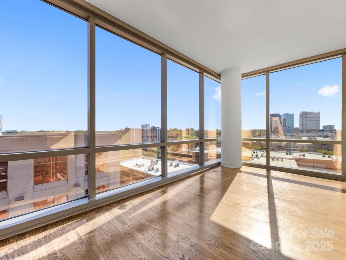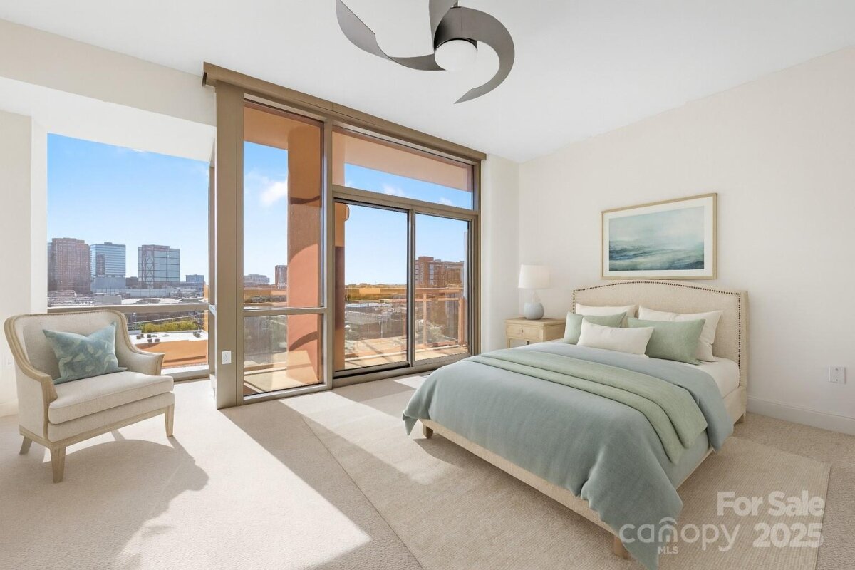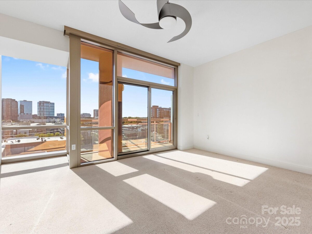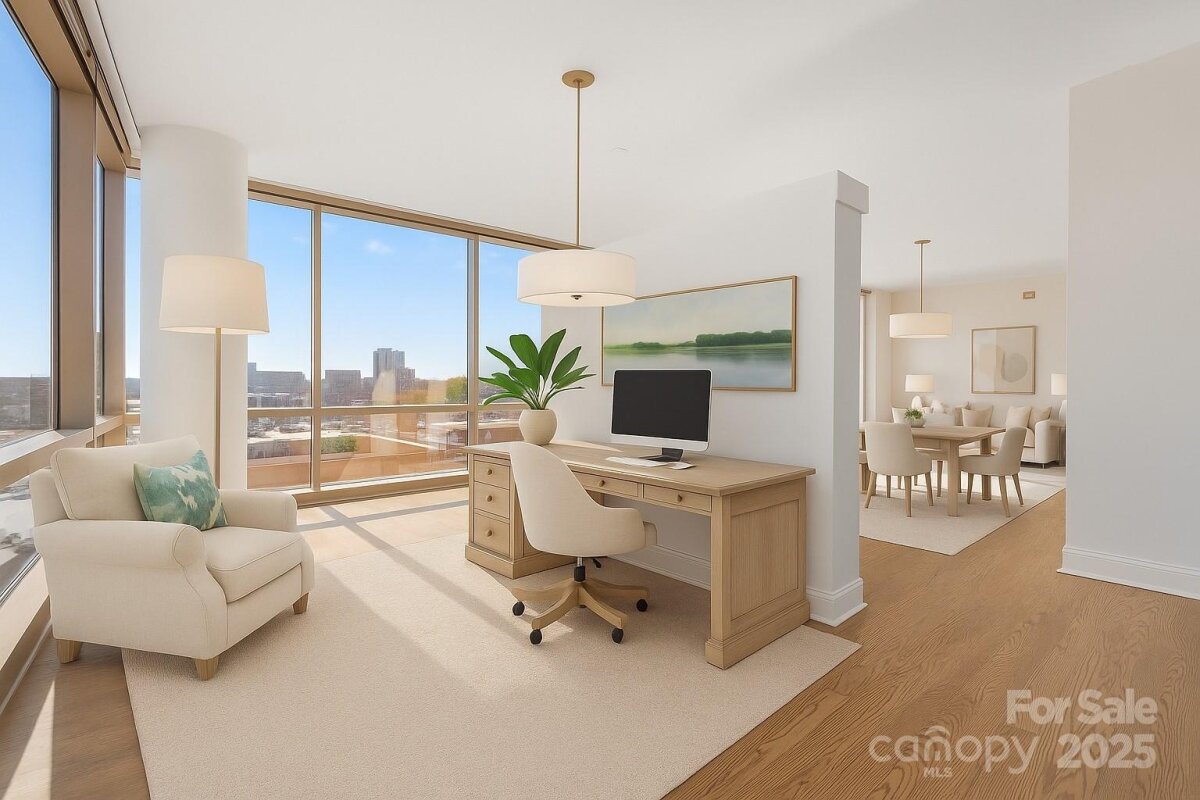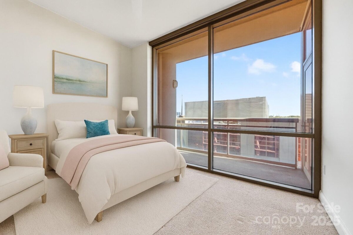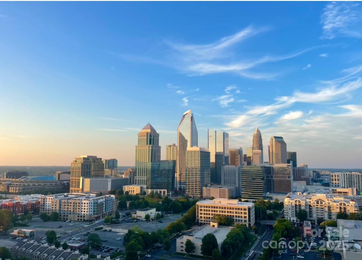 Enjoy the ease of city living, walkability, and the concierge lifestyle in this beautiful, light filled condo in the heart of the South End. Stunning views in this updated condo that's been thoughtfully re-designed to make the most of the city views and flexible floorplan with a separate office space, living & dining, plus two bedrooms! Relax or entertain in the open and airy living and dining rooms surrounded by walls of windows. Or, retreat to the separate office space with access to one of the two balconies. Kitchen has white cabinets, stone counters, & newer ss appliances including a gas range. The spacious primary bedroom features a private balcony, large walk-in closet designed for maximum functionality, and renovated bath w/ white double vanity, quartz counters & a large walk in shower. 2024 HVAC and water heater for ease of mind and living. This unit comes with two parkings spaces -a huge benefit in the bustling south end. Located just 2 blocks from the 2 light rail stations offering true walkability to work and play. The Arlington features on-site concierge, rooftop pool & patio with incredible city views, fitness center, and the ease of a living only a few locations in Charlotte offer.