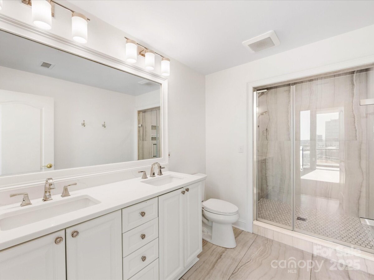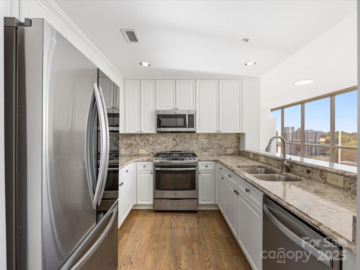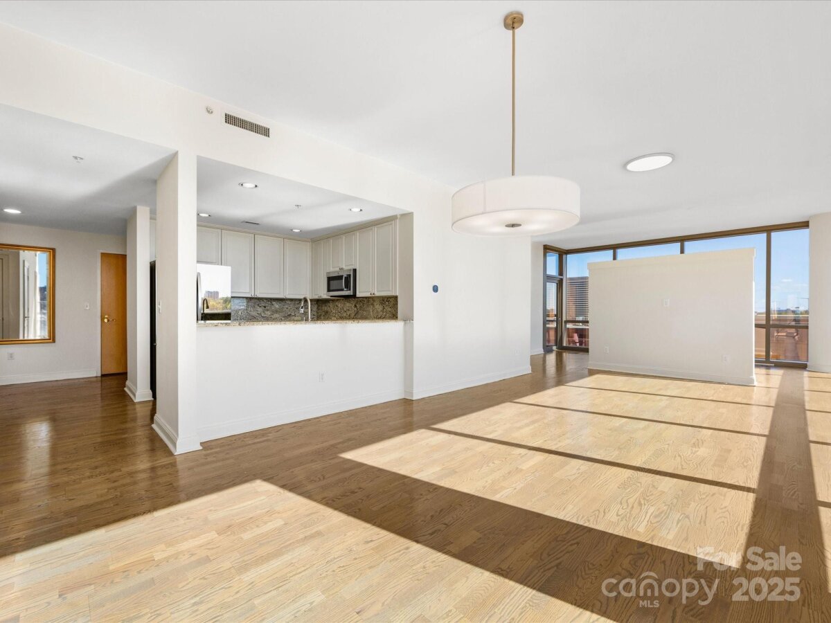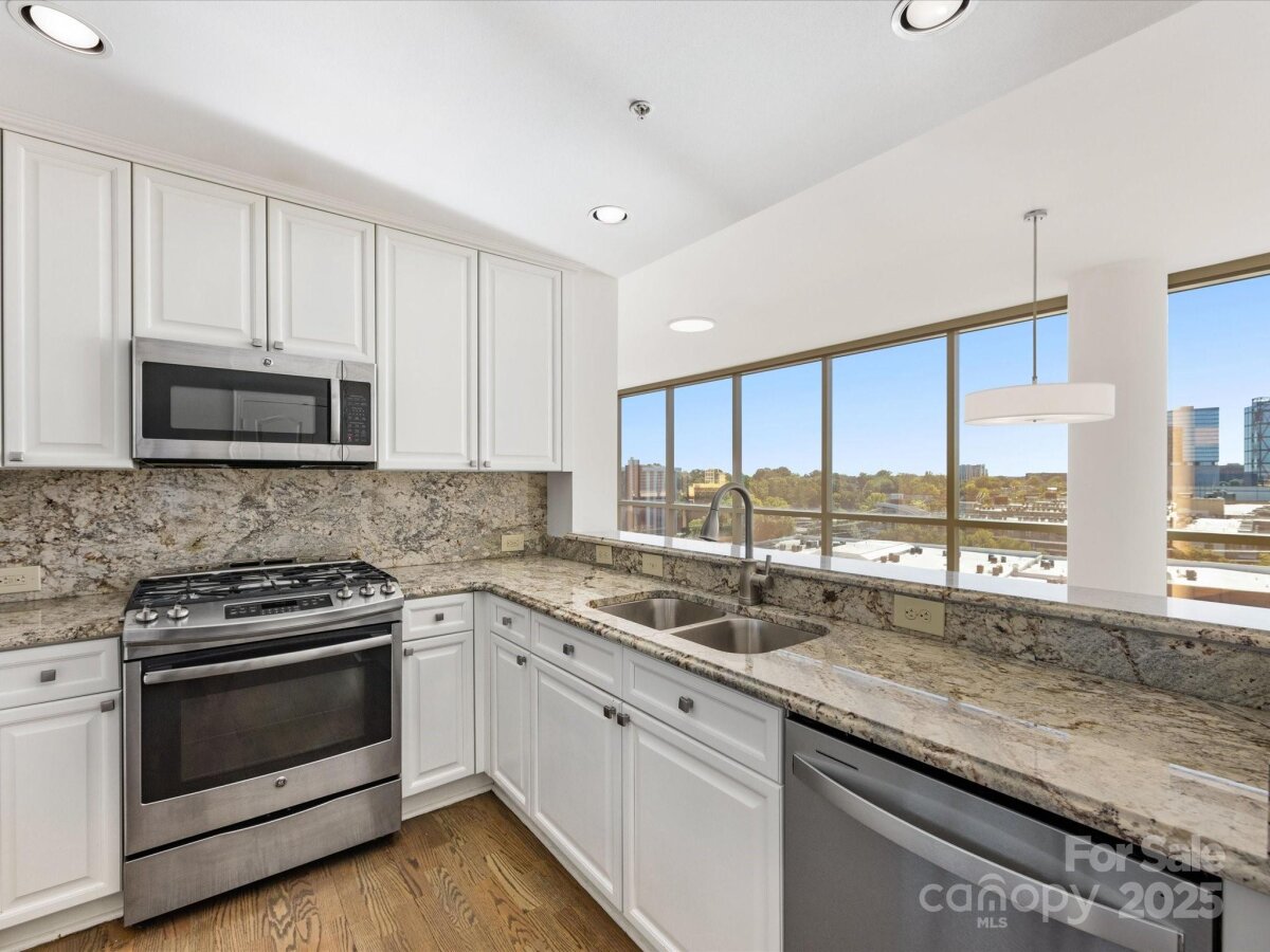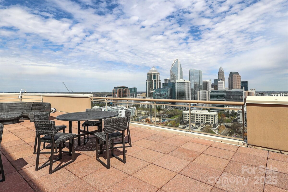 Enjoy the ease of city living, walkability, and the concierge lifestyle in this beautiful, light filled condo in the heart of the South End. Stunning views in this updated condo that's been thoughtfully re-designed to make the most of the city views and flexible floorplan with a separate office space, living & dining, plus two bedrooms! Relax or entertain in the open and airy living and dining rooms surrounded by walls of windows. Or, retreat to the separate office space with access to one of the two balconies. Kitchen has white cabinets, stone counters, & newer ss appliances including a gas range. The spacious primary bedroom features a private balcony, large walk-in closet designed for maximum functionality, and renovated bath w/ white double vanity, quartz counters & a large walk in shower. 2024 HVAC and water heater for ease of mind and living. This unit comes with two parkings spaces -a huge benefit in the bustling south end. Located just 2 blocks from the 2 light rail stations offering true walkability to work and play. The Arlington features on-site concierge, rooftop pool & patio with incredible city views, fitness center, and the ease of a living only a few locations in Charlotte offer.