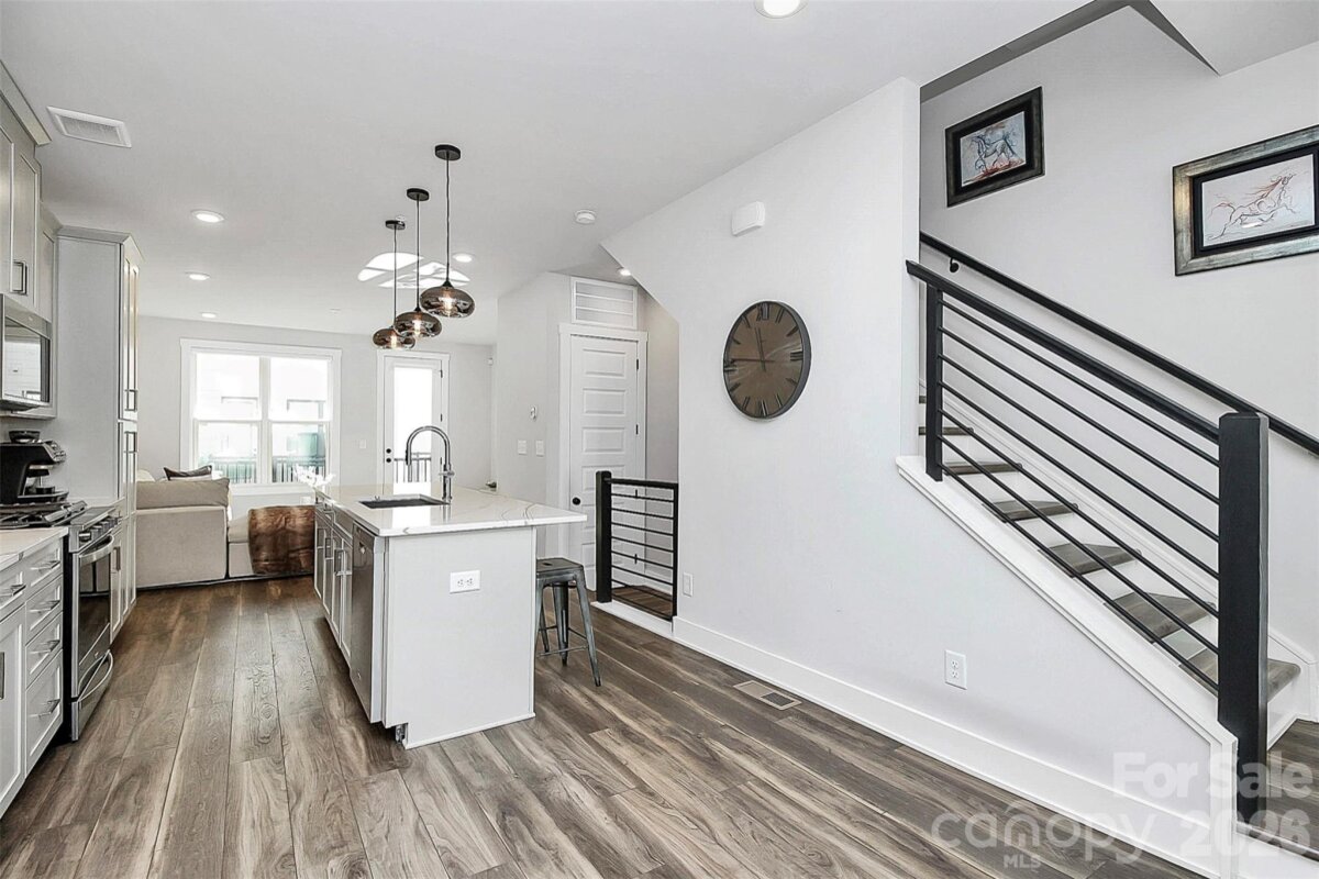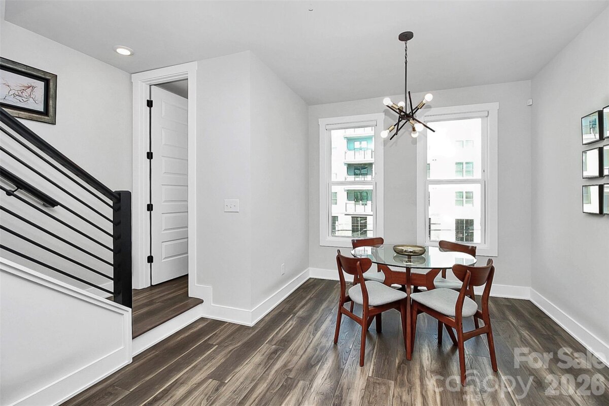 Welcome to this beautifully designed four-story townhome in the heart of South End, built in 2022 and thoughtfully crafted for modern living. Blending clean lines, functional spaces, and stylish finishes, this home offers an effortless urban lifestyle. The entry level features a spacious two-car tandem garage with ample storage. Upstairs, the main living level is filled with natural light and showcases an open-concept layout ideal for both everyday living and entertaining. The kitchen is a standout with a large island, sleek finishes, and seamless flow into the dining and living areas. A powder room and private balcony provide added convenience and a perfect spot to unwind. The third floor offers a well-appointed primary suite with a dual vanity bath, along with a secondary bedroom featuring its own private bathroom. The top level adds even more versatility with an additional bedroom and full bath, plus a bonus living space that opens to an expansive terrace—ideal for relaxing or hosting. All of this, just moments from South End’s vibrant dining, shopping, and entertainment options, with easy access to everything Charlotte has to offer. Home is also available to rent at $3,900 move in date May 7th!