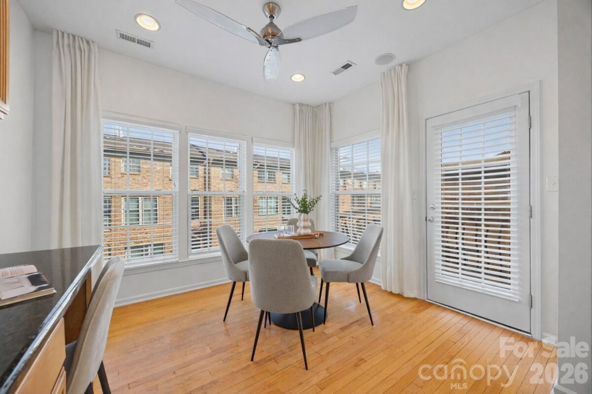 Rare South End townhome built for modern city living—walkable, move-in ready, and flexible enough for working from home without sacrificing space or style. This 4-bedroom townhome offers the space you want with the connected, lock-and-leave lifestyle today’s buyers demand, all in the heart of one of Charlotte’s most vibrant neighborhoods. Fresh interior paint and brand-new carpet throughout make it easy to unpack and enjoy from day one. The kitchen is designed for both everyday living and entertaining, featuring granite countertops, stainless steel appliances, and a gas range with double convection oven. The light-filled main level showcases hardwood floors, a gas-log fireplace, and a sunroom with dry bar—perfect for hosting friends or unwinding after a long day. Upstairs, the third level features a spacious primary suite plus two additional bedrooms. The first-floor bedroom with a large walk-in closet offers exceptional flexibility, ideal for a home office, guest suite, or media room. Major system updates include a new HVAC (9/2025) and a new roof (2025), providing peace of mind and low-maintenance ownership. Washer, dryer, and refrigerator convey. A one-car garage with additional driveway and street parking adds everyday convenience. Step outside to enjoy unbeatable access to the Blue Line light rail, award-winning restaurants, breweries, shops, and Uptown. Walk to Panthers games or Knights games, skip the commute, and live where work, play, and connection come together. Urban, effortless, and move-in ready—this is South End living at its best.