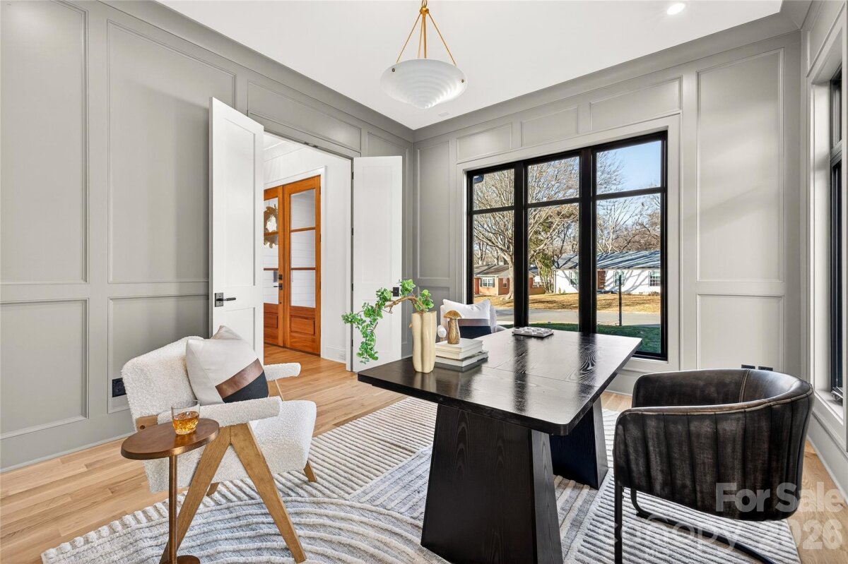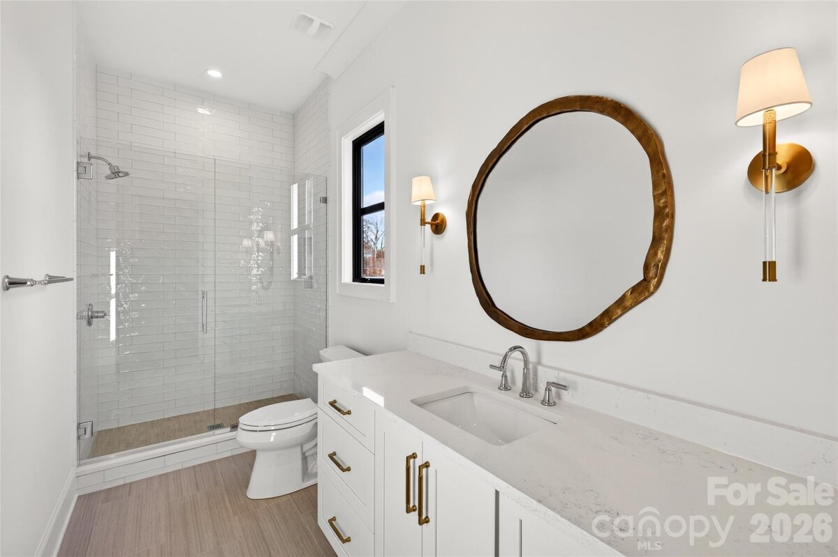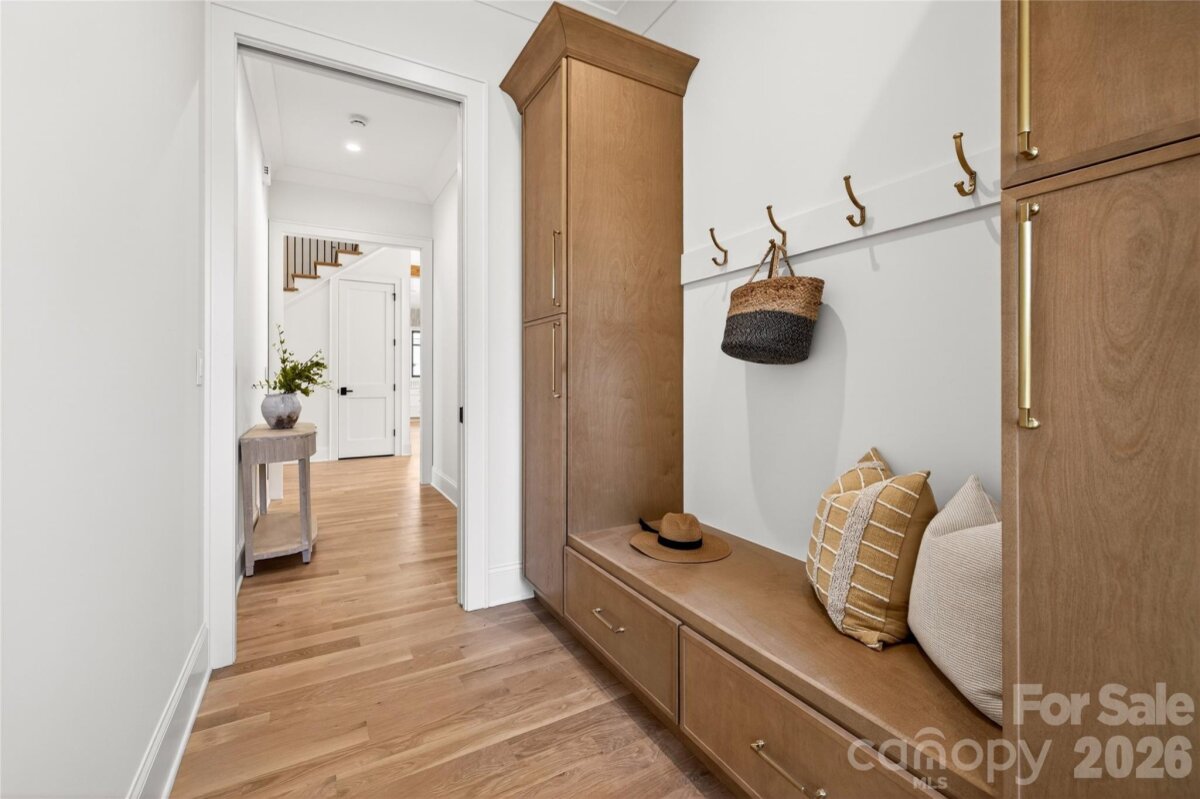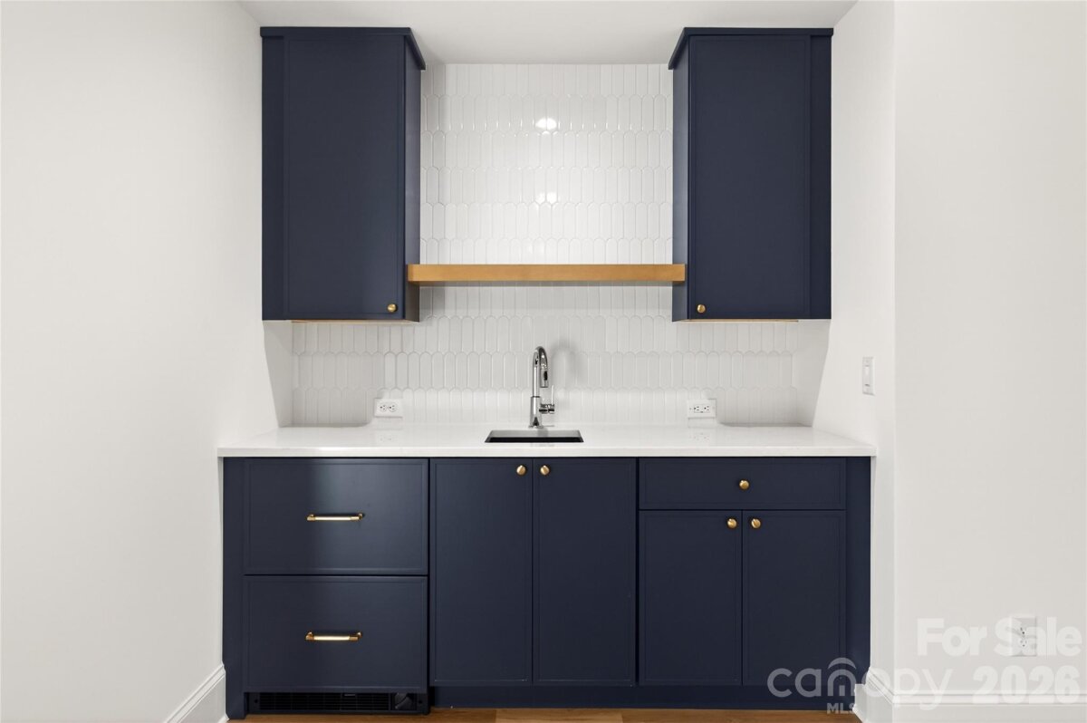 NEW BUILD. AMAZING opportunity to own a gorgeous custom built home that sits on a .31-acre beautifully landscaped and fully irrigated flat backyard. 6' fence. 5159 heated SF. 5 BRs, 6 full BAs, 1 powder room. Loaded with high-end features and plenty of space, this impressive design offers a 2-story open above Entry Hall, Dining Room, Walk-in Wet Bar, Walk-in Pantry with permanent shelving, Office with library paneling, Bedroom, Bath, Powder Bath, Drop Zone, gorgeous Chef's Kitchen with custom cabinets, SS appliances, beautiful lighting, exquisite backsplash, soft close drawers, gas cooking and large island all open to the Family Room with FP with marble surround, switch for gas logs, bookcases, and private covered rear Porch with ceiling fan, lighting, FP. Heavy trim and hardwood flooring finished in place throughout the home. Beautiful tile in all baths. Upper Level features a large Master Suite with a huge walk-in closet, Master Bath has tub, shower, 2 sinks, towel closet. Upstairs also has 3 BR suites, 2 with tubs and all 3 with showers. Laundry Room has a tall folding table, sink. 3rd Level is a finished Bed/Loft with a closet, wet bar, sink, refrigerator drawer, ice drawer, and a bath with shower and vanity sink. Fabulous opportunity to live in a brand new home in a great south Charlotte school district! Wonderful location--10 minutes to uptown Charlotte, walking distance to restaurants, grocery store, parks, cinema, post office. 2026 Schools, Selwyn Elementary School, Alexander Graham Middle School and Myers Park High School. Garage with epoxy flooring, door to the trash can pad. Contractor shall warrant the home for 1 year from the date of move in and a 10-year structural warranty beyond the builder's 1-year warranty.