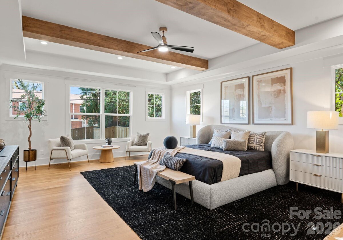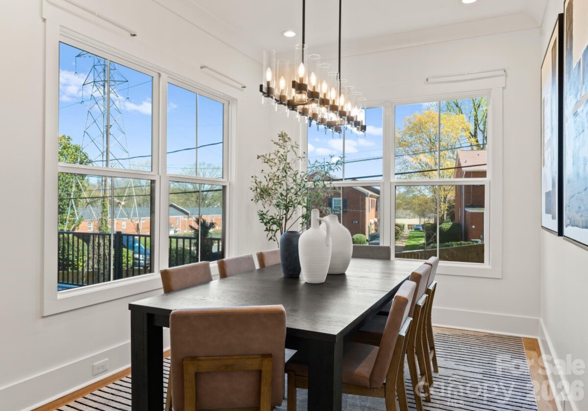 Welcome to an exceptional residence in the heart of Sedgefield, one of Charlotte’s most sought-after neighborhoods, where timeless design meets modern luxury. This stunning two-story home with a fully finished walkout basement offers an elevated living experience defined by sophistication, comfort, and thoughtful craftsmanship. From the moment you enter, the home is filled with natural light streaming through expansive windows, highlighting the elegant open-concept living spaces designed for both refined entertaining and everyday living. At the center of the home, a chef’s kitchen features premium Thermador appliances, custom cabinetry, and generous preparation space—perfect for hosting intimate gatherings or larger celebrations. The primary suite is conveniently located on the main level, offering a private retreat complete with a spa-inspired en-suite bath and generous closet space. Thoughtfully designed for comfort and privacy. Upstairs, you’ll find four additional bedrooms, three beautifully appointed bathrooms, versatile bonus spaces, and a spacious laundry room, providing exceptional flexibility for family living or guests. Throughout the home, exquisite white oak hardwood floors add warmth and continuity, complementing the home’s refined architectural details. The fully finished walkout basement creates an extraordinary extension of the living space, ideal for a private guest retreat, home theater, wine lounge, fitness studio, or secondary living quarters allowing the next owner to tailor the space to their lifestyle. Additional modern amenities include an EV charger in the garage and a full irrigation system, seamlessly blending luxury with everyday convenience. Perfectly positioned just minutes from Charlotte’s premier dining, shopping, and entertainment, this remarkable Sedgefield residence represents an exceptional opportunity to experience luxury living in one of the city’s most vibrant communities.