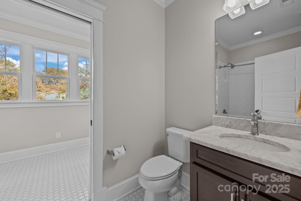 Welcome to this stunning 2014-built Craftsman that seamlessly blends timeless Southern charm with every modern upgrade today’s buyer desires. 5 bedrooms, 3.5 baths, 3,507 square feet of warm, light-filled living on a quiet, tree-lined street in the heart of Sedgefield. The main level greets you with hardwood floors throughout, 10-ft ceilings, deep crown molding, board-and-batten detailing, and abundant natural light. An elegant formal dining room with board-and-batten walls is perfect for gatherings, while a private office or 5th bedroom with adjacent ¾ bath (walk-in shower) offers ideal flexibility. The open gourmet kitchen boasts a generous island, double dishwashers, pot filler, marble & granite counters, and a walk-in pantry made for appliances plus a bonus closet pantry. It flows effortlessly into the dramatic great room featuring a deep coffered ceiling and a wall of windows overlooking the backyard. A convenient drop zone with powder bath connects the oversized, fully insulated two-car garage directly to the kitchen. Upstairs, the spacious primary suite serves as a true retreat with a tray ceiling, spa-like bath with double vanities, deep soaking tub, and oversized walk-in shower, and a large walk-in closet that opens straight into the laundry room (built-ins + folding counter). Three additional well-sized bedrooms share a smart Jack-and-Jill bath with dual vanities and hall access. The huge bonus room over the garage comes pre-wired with built-in surround-sound speakers and a dedicated media closet — ready for movies, play, or workouts. Step outside to the covered rear porch with ceiling fans, an outdoor shower, and one of the largest, most usable backyards you’ll find this close to town — deep, level, partially fenced, and begging for a pool, playset, fire pit, or gardens. Real space to breathe and play. Perfectly located on a quiet street with the best neighbors, an easy walk to Sedgefield Park and school, and just minutes to Freedom Park, the Greenway, shopping, and all of South End’s vibrant energy — yet peacefully removed from the noise. Freshly painted inside and out and completely move-in ready. Southern charm meets modern luxury in one of Charlotte’s most desirable neighborhoods. This is the one you’ve been waiting for.
