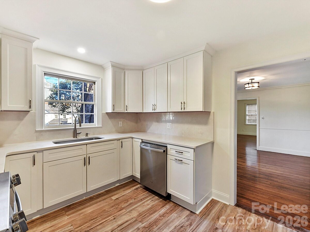 Welcome to one of the best streets in Historic Dilworth! Uptown Views and steps to South End. This gorgeous home has a updated kitchen with new appliances, lots of countertop space (Quartz), cabinets, new flooring and an UPTOWN VIEW. A bedroom and full bath are on main level. Large laundry / project room between garage and kitchen with exit to back yard. Spacious Living room has fireplace. The dining room and sunroom have views of back yard and uptown. Upstairs has 2 bedrooms with extra large closets. The upstairs bathroom is recently updated and gorgeous! Inviting deck perfect for entertaining or relaxing. Also has a one car garage with front and back entry ! Application fee is $100 per adult. Long term rentals only and pets must be approved by owner. Pets conditional/No smoking/Excellent or Great credit score preferred. App fee is $100 per adult. Rental price includes yard maintenance and washer dryer.