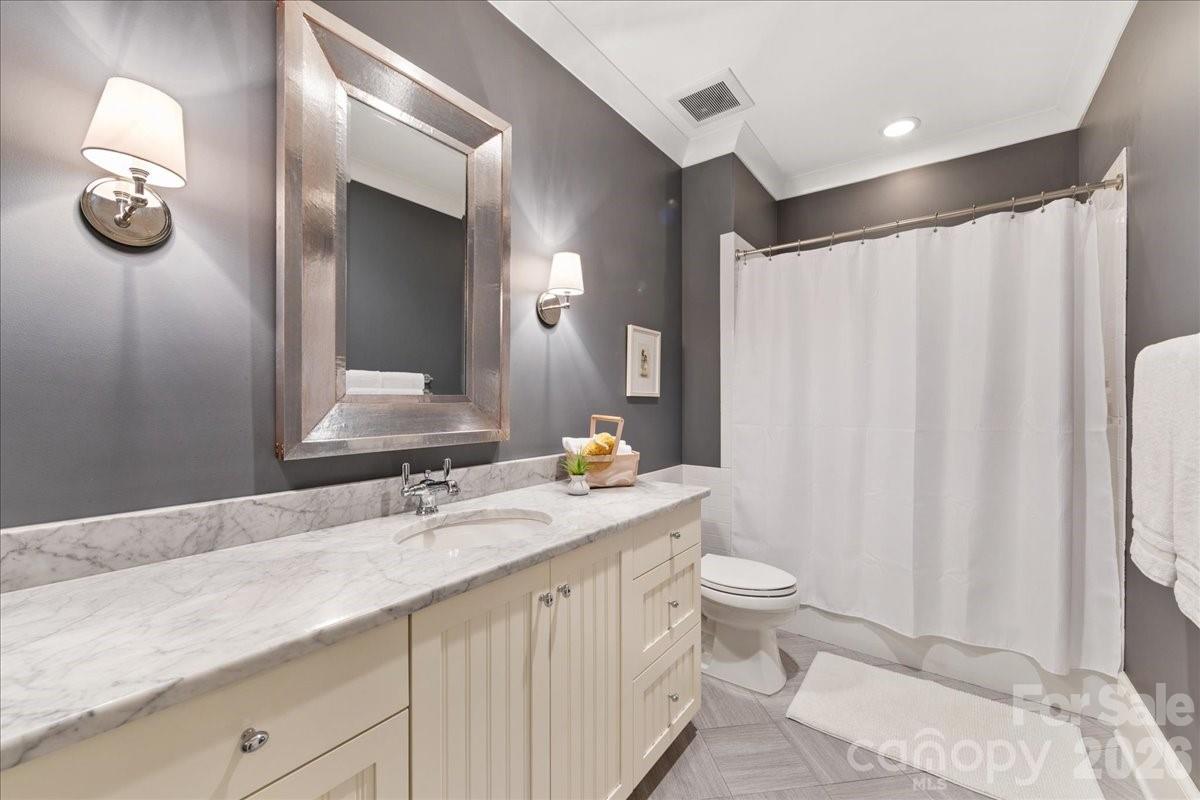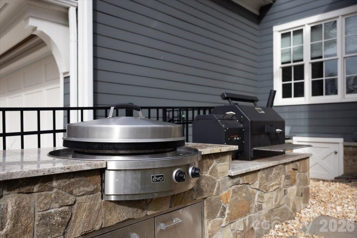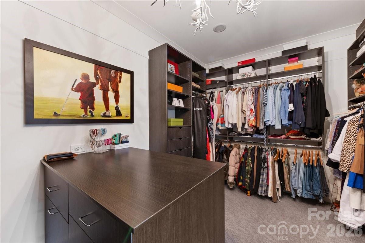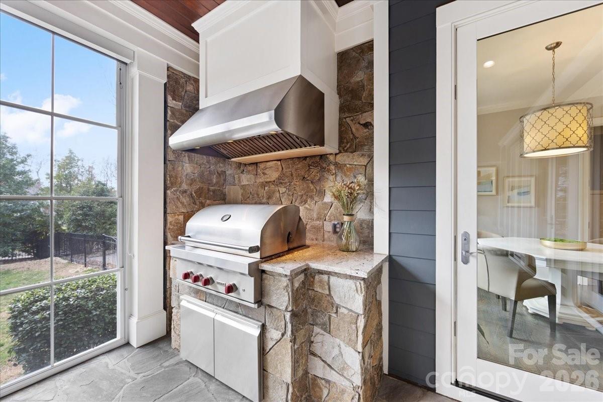 Elegance in Old Foxcroft! This custom-built home, designed by Christopher Phelps, sits on a .42-acre corner lot in the heart of Old Foxcroft. A large covered front porch welcomes you with custom doors, flagstone pavers, and a striking barrel ceiling. Inside, the open floor plan offers exceptional detail and conveniences throughout. The gourmet Kitchen features custom cabinetry, a large island with Cambria countertops, bar seating, and glass pendants. Addt'l highlights include a Thermador 6-burner gas range with double ovens, warming drawer, custom hood, Thermador dishwasher & refrigerator and a wine storage room. The adjacent Scullery makes hosting effortless, offering pantry storage, a copper sink, microwave, and a second dishwasher. The Great Room showcases a coffered ceiling, gas fireplace with limestone mantel, and built-ins. The main-level Office or Flex room provides added versatility, along with a main-level Bedroom featuring an en suite Bath with a wheelchair-accessible, zero-entry shower. The Resource room includes a built-in project/art table, desk, galvanized tub sink, drop zone, and serves as level laundry room. Upstairs, the Primary suite and three additional Bedrooms all feature en suite Baths. The Bonus room offers a wet bar with beverage refrigerator, while a second Laundry Room provides walk-in attic storage. The children’s Study includes built-in desks and a charming window seat. Outdoor living is a dream, with a 563 sq ft three-season porch featuring EZE-Breeze windows, a gas fireplace, and a built-in Wolf gas grill. The backyard continues to impress with a built-in EVO grill, Yoder pellet smoker, and a private putting green—perfect for relaxing after a long day. The list of upgrades goes ON and ON! This exceptional home truly has it all and is just steps from SouthPark shopping and dining.