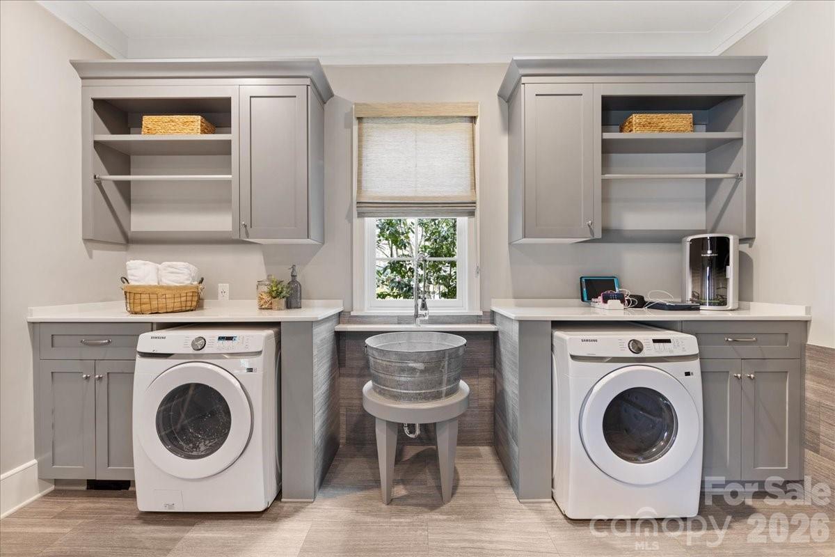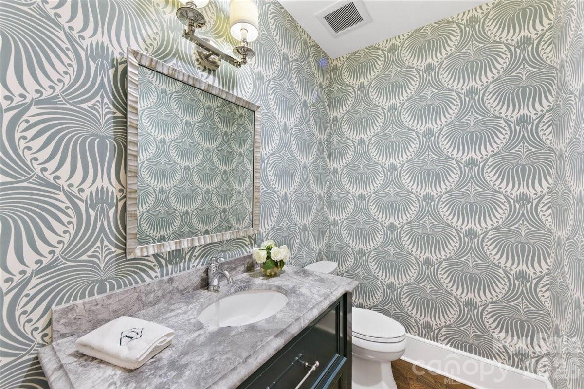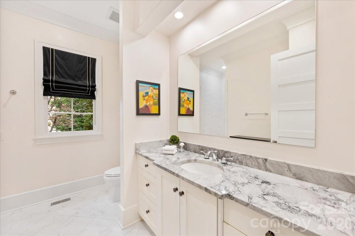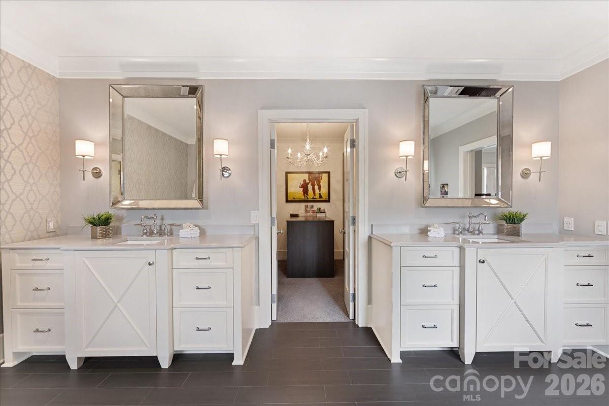 Elegance in Old Foxcroft! This custom-built home, designed by Christopher Phelps, sits on a .42-acre corner lot in the heart of Old Foxcroft. A large covered front porch welcomes you with custom doors, flagstone pavers, and a striking barrel ceiling. Inside, the open floor plan offers exceptional detail and conveniences throughout. The gourmet Kitchen features custom cabinetry, a large island with Cambria countertops, bar seating, and glass pendants. Addt'l highlights include a Thermador 6-burner gas range with double ovens, warming drawer, custom hood, Thermador dishwasher & refrigerator and a wine storage room. The adjacent Scullery makes hosting effortless, offering pantry storage, a copper sink, microwave, and a second dishwasher. The Great Room showcases a coffered ceiling, gas fireplace with limestone mantel, and built-ins. The main-level Office or Flex room provides added versatility, along with a main-level Bedroom featuring an en suite Bath with a wheelchair-accessible, zero-entry shower. The Resource room includes a built-in project/art table, desk, galvanized tub sink, drop zone, and serves as level laundry room. Upstairs, the Primary suite and three additional Bedrooms all feature en suite Baths. The Bonus room offers a wet bar with beverage refrigerator, while a second Laundry Room provides walk-in attic storage. The children’s Study includes built-in desks and a charming window seat. Outdoor living is a dream, with a 563 sq ft three-season porch featuring EZE-Breeze windows, a gas fireplace, and a built-in Wolf gas grill. The backyard continues to impress with a built-in EVO grill, Yoder pellet smoker, and a private putting green—perfect for relaxing after a long day. The list of upgrades goes ON and ON! This exceptional home truly has it all and is just steps from SouthPark shopping and dining.