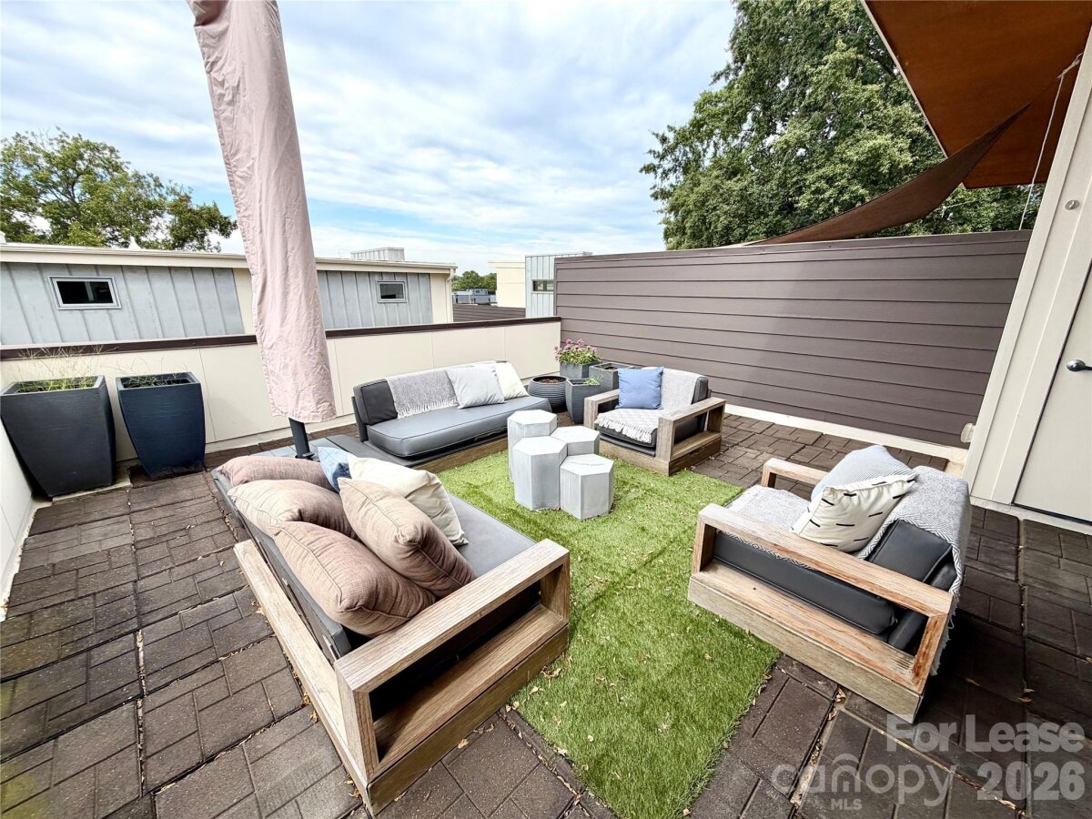 Fall in love with this furnished modern Uptown townhome in picturesque 3rd Ward! This stunning, meticulously maintained home with modern finishes is situated in a private enclave and tucked away perfectly off the main street, providing a warm home with prime accessibility to everything Charlotte has to offer! This private oasis is filled with natural light, perfect for entertaining or quiet nights relaxing. The open floor plan and large windows allow light to flow in and bounce off the hardwood floors, with plenty of space for living and dining areas. The 3rd floor suite is an owner's dream with a large bedroom area, walk in closet with custom closet system and a large ensuite bath with shower & dual vanities. Also enjoy direct access to a huge private rooftop terrace. The lower level is a perfect office area or ideal guest suite with attached bath and large closet. Never worry about parking with your own 2-car garage - this home truly has it all! A rare gem!