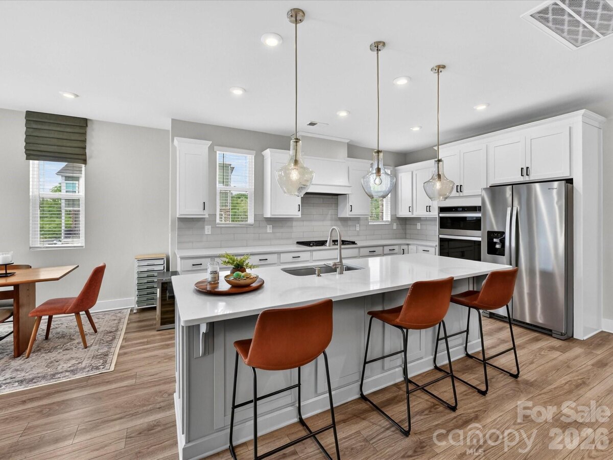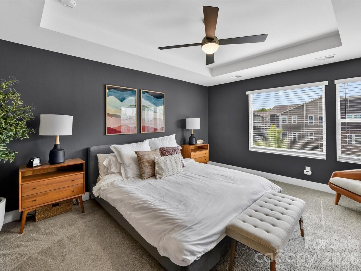 Step into refined comfort with this exceptional end-unit, three-story townhome offering 5 spacious bedrooms and 4 beautifully appointed bathrooms in the highly sought-after University area. Perfectly positioned against a tree-lined backdrop, this residence blends modern sophistication with serene natural surroundings. Designed with versatility in mind, each level features at least 1 bedroom and full bath —ideal for private guest suites, a stylish home office, a cozy den, or whatever your lifestyle demands. At the heart of the home, a light and bright kitchen exudes modern elegance, featuring a gas cooktop, sleek built-in wall oven, and refined finishes that elevate both everyday living and effortless entertaining. This stunning space flows seamlessly into a light-filled living room, creating an inviting, open-concept setting perfect for gathering, relaxing, and making lasting memories. . Unwind on the expansive covered balcony, where you can enjoy peaceful views and fresh air after an afternoon at the community pool. A spacious two-car garage with ample storage adds both convenience and practicality to this already impressive home. Close to Trader Joe's and walkable to Mallard Creek Elementary. This is more than a home—it’s a private retreat designed for comfort, style, and effortless living. Come experience the lifestyle you deserve.