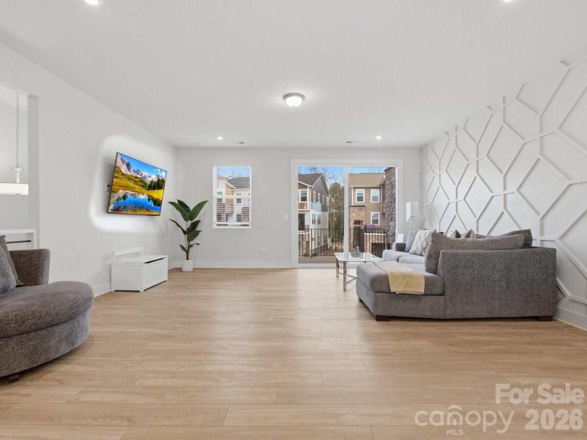Step into this stunning 2022-built, 3-story townhome in the convenient University Research Park area, where modern design meets everyday functionality. From the moment you arrive, you’ll notice thoughtful details and bright, open spaces- plus multiple outdoor living areas and a quiet cul-de-sac location. The lower level offers a private guest suite with full bath and access to a patio, plus a convenient drop zone off the 2-car garage. The main floor is made for entertaining and living beautifully: a chef’s kitchen with an expansive island, white cabinetry, tile backsplash, and walk-in pantry flows seamlessly into the living room with a designer accent wall, opening to both a rear deck and a spacious front balcony—giving you three distinct outdoor living spaces to enjoy morning coffee, evening sunsets, or casual gatherings. Upstairs, a dedicated laundry room, two guest bedrooms, and a shared bath with dual sinks provide space and comfort for family or guests. The primary suite is a serene retreat overlooking a pond and lush greenery, with a luxurious bathroom featuring a soaking tub, semi-frameless shower, linen closet, and dual closets including a large walk-in, all under a trey ceiling. Designer touches, abundant natural light, like-new, and a great location with community amenities including a pool make this home move-in ready and truly exceptional. Don't miss your chance!