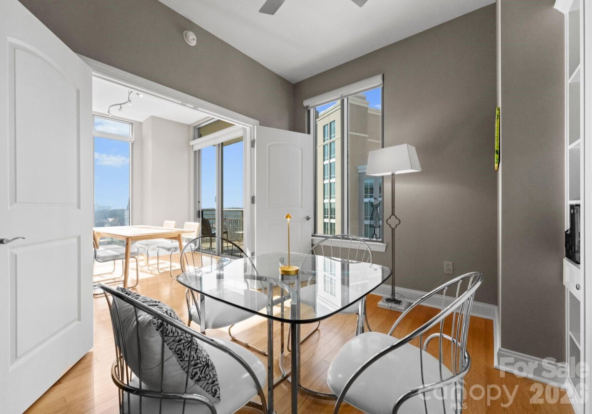 Step into this stunning corner junior penthouse and prepare to be wowed. With its expansive open layout, soaring ceilings, and floor-to-ceiling windows, every inch of this home radiates light, space, and sophistication. The custom-designed interior seamlessly extends onto two southwest-facing terraces, offering the perfect spot to sip your morning coffee or toast the sunset. The heart of the home is a chef’s dream kitchen, complete with sleek granite countertops, a suite of professional-grade stainless steel Viking appliances, a walk-in pantry, and a large island that’s perfect for both meal prep and lively conversations. The owner’s suite is a true retreat, boasting its own private terrace, a spa-like bath with dual sinks, a frameless glass shower, a soaking tub, and a walk-in closet that’s nothing short of dreamy. The additional bedrooms don’t disappoint, with generous closets and versatility to suit your needs—one is currently styled as a study, featuring custom built-ins and a Murphy bed. There’s even a separate laundry room and plenty of storage throughout to simplify your everyday life. This residence offers access to top-tier amenities, including a saltwater pool, hot tub, grilling and lounge areas, a state-of-the-art fitness center, a stylish resident lounge, and concierge service that takes care of the little things. Plus, you’ll enjoy two deeded parking spaces that make city living a breeze. This home is walking distance to everything the Uptown Charlotte lifestyle offers.