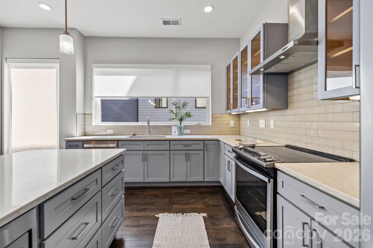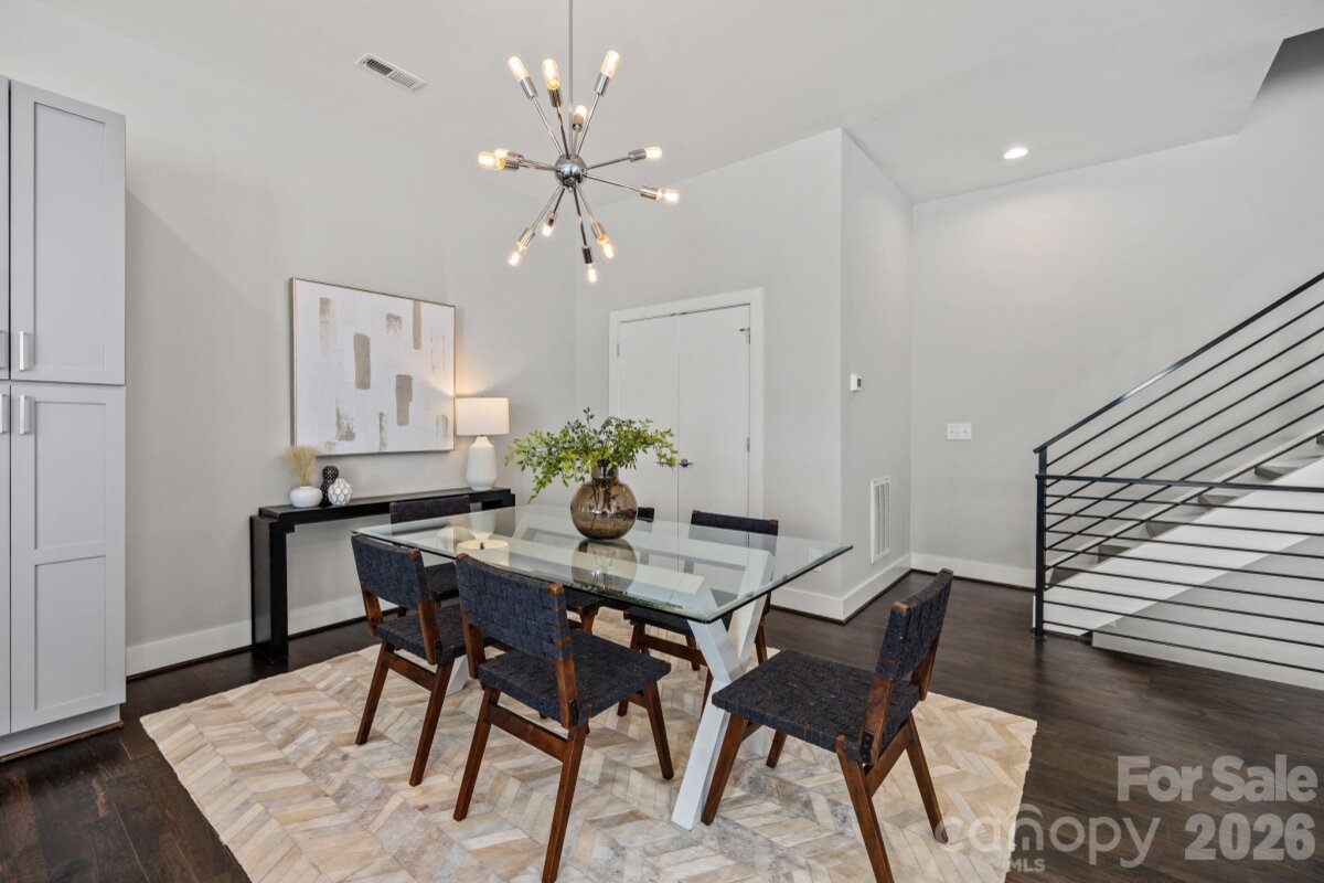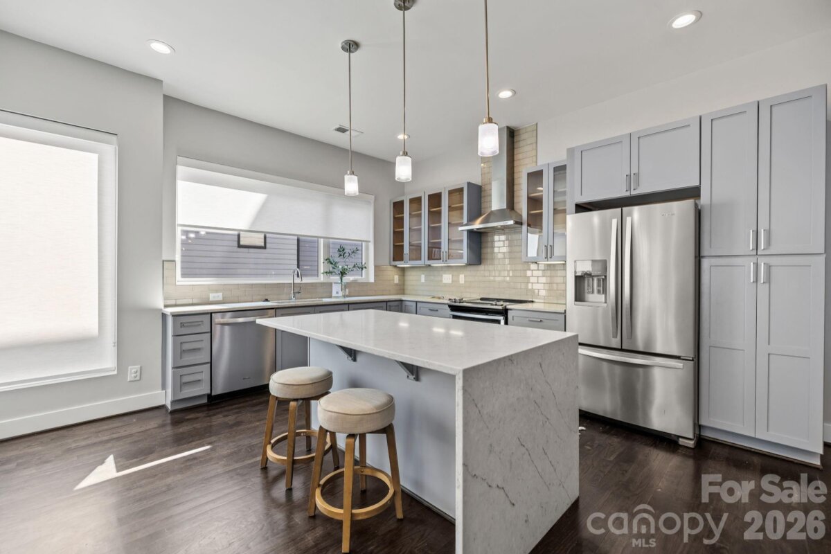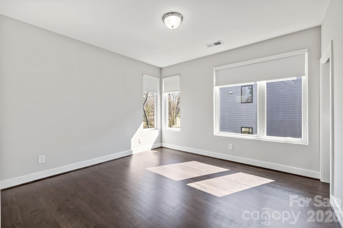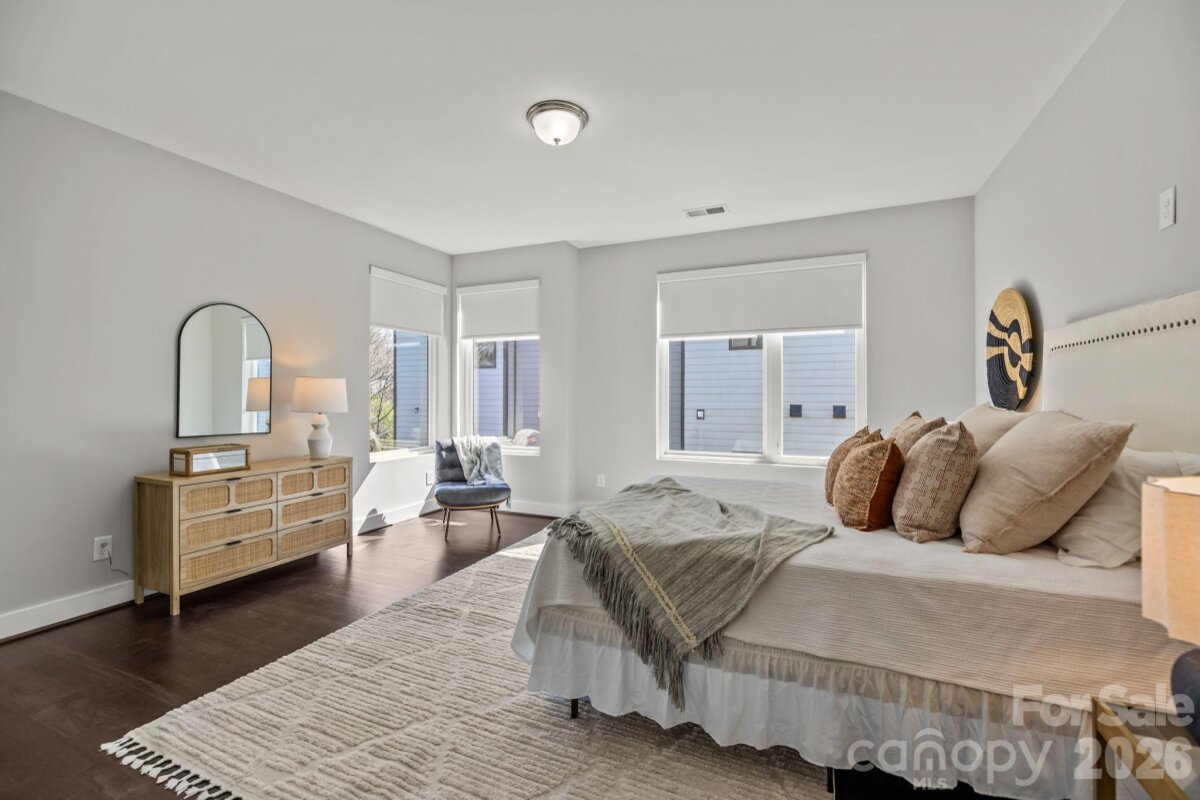 Ultimate Uptown living at its finest at Luxity Terraces in Charlotte’s highly desirable Third Ward. This move-in-ready private END residence features 3 spacious bedrooms, 3 full bathrooms, lovely powder room, and a private two-car garage — a rare Uptown advantage. The home’s hardwood floors flow seamlessly through the kitchen, living, dining, and hallways, while 10-foot ceilings enhance the open, light-filled layout. The kitchen and full baths are appointed with quartz countertops, custom cabinetry, and stainless steel appliances, combining sophistication and functionality, and full baths feature tiled floors and showers with the powder room accented in warm hardwood. A private rooftop terrace provides sweeping Uptown skyline views, offering the perfect setting for entertaining or relaxing above the city. Expansive windows frame serene views of Frazier Park, creating a rare sense of privacy and tranquility in the heart of the city. Just steps from Charlotte’s premier dining, cultural attractions, and professional sports venues, this home delivers the ideal balance of vibrant city life and peaceful retreat. With its exceptional finishes, thoughtful design, generous scale, and unbeatable location, opportunities like this are rare — a home that offers both elevated lifestyle and enduring value. Homes of this caliber attract immediate attention; act now to secure one of Uptown’s most remarkable residences. FRESHLY PAINTED INTERIOR 2026. Water and sewer included