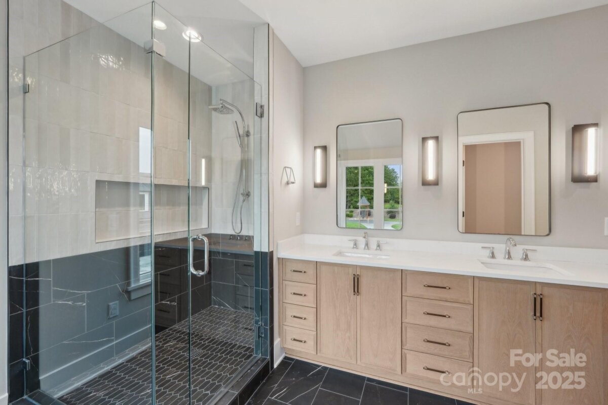 Set within the exclusive Cardinal Crest community, this semi-custom luxury estate perfectly balances privacy and convenience on a beautifully wooded one-acre lot. The thoughtfully designed open floor plan showcases a gourmet kitchen with custom cabinetry, premium appliances, and an expansive island that connects seamlessly to the great room—complete with vaulted ceilings, exposed beams, and a striking floor-to-ceiling fireplace. The main-level primary suite offers a serene retreat with a spa-inspired bathroom and custom walk-in closet. Upstairs includes a secondary primary suite, two additional en-suite bedrooms, and a spacious bonus room ideal for an office, fitness area, or media lounge. The fully finished basement was built for entertaining, featuring a guest bedroom, recreation areas, a stylish bar, and direct access to the covered patio. Designed with the future in mind, the home includes provisions for an elevator, a three-car garage, and an advanced security system. Just minutes from I-485, shopping, and dining, this estate offers the best of Weddington living—peaceful surroundings with city conveniences close by. Don’t miss your opportunity to own in one of the area’s most desirable communities. Schedule your private showing today!