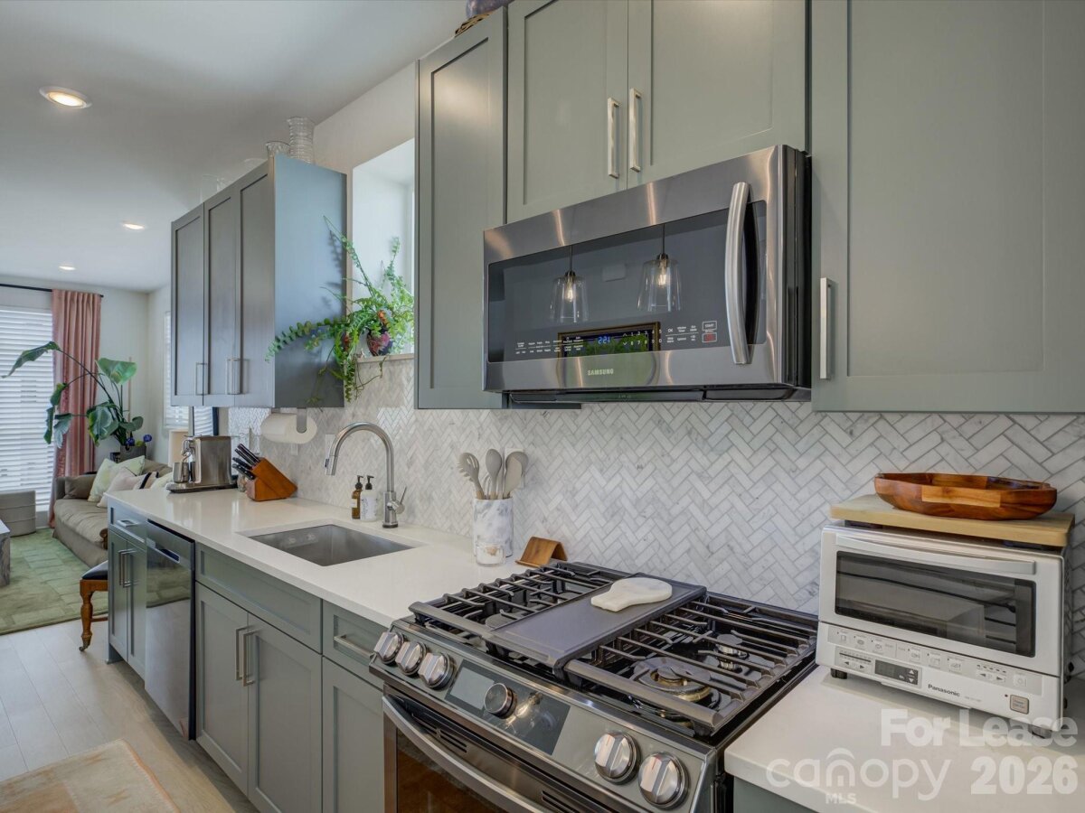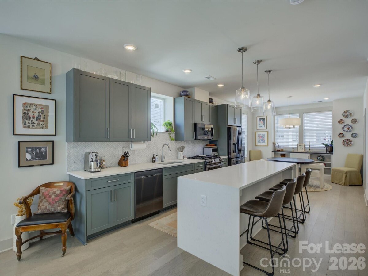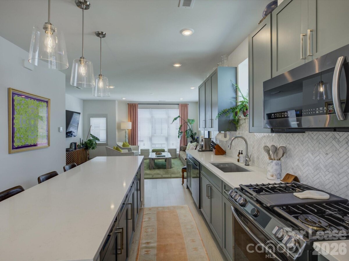 Luxury Townhome in Sky Terrace Towns | End-Unit + Rooftop Terrace + Skyline Views Welcome to elevated living in the highly sought-after Sky Terrace Towns community! This stunning 3-bedroom, 3.5-bathroom luxury end-unit townhome offers the perfect blend of modern design, comfort, and unbeatable location—just minutes from Uptown Charlotte and steps from the greenway. Step inside and experience thoughtfully designed contemporary living, with amazing natural light from additional side windows, with each bedroom featuring its own private bathroom plus powder room for guests, providing exceptional flexibility and privacy for roommates, guests, or a home office setup. The chef’s kitchen is a true showstopper, boasting stylish green cabinetry, an oversized waterfall-edge island perfect for entertaining, sleek white quartz countertops, stainless steel appliances with a gas range, and a designer herringbone tile backsplash. The open-concept layout flows seamlessly into the living spaces, creating a bright and inviting atmosphere throughout. Unwind in your private rooftop terrace, complete with artificial turf and breathtaking skyline views—ideal for relaxing evenings or hosting guests. The home also includes an attached one-car garage with additional driveway parking, as well as a washer and dryer for added convenience. Located in the vibrant Wesley Heights neighborhood, you’ll enjoy close proximity to local breweries, shops, parks, a dog park, and direct greenway access, all while being just minutes from Uptown. This is city living at its finest—don’t miss your opportunity to call this exceptional property home. Schedule your showing today! Seeking tenants for 12+ month lease term starting June 1st. Tenants will ideally have 650+ credit scores, a minimum household income of at least 2.5x the monthly rent, no previous evictions. Pets accepted conditionally with owner approval with nonrefundable pet fee $350 per pet and monthly pet rent $35/month (prefer no pets or small dogs). All residents over the age of 18 must fill out their own application handled by Aleasa, LLC. Application cost is $65 per person, nonrefundable.