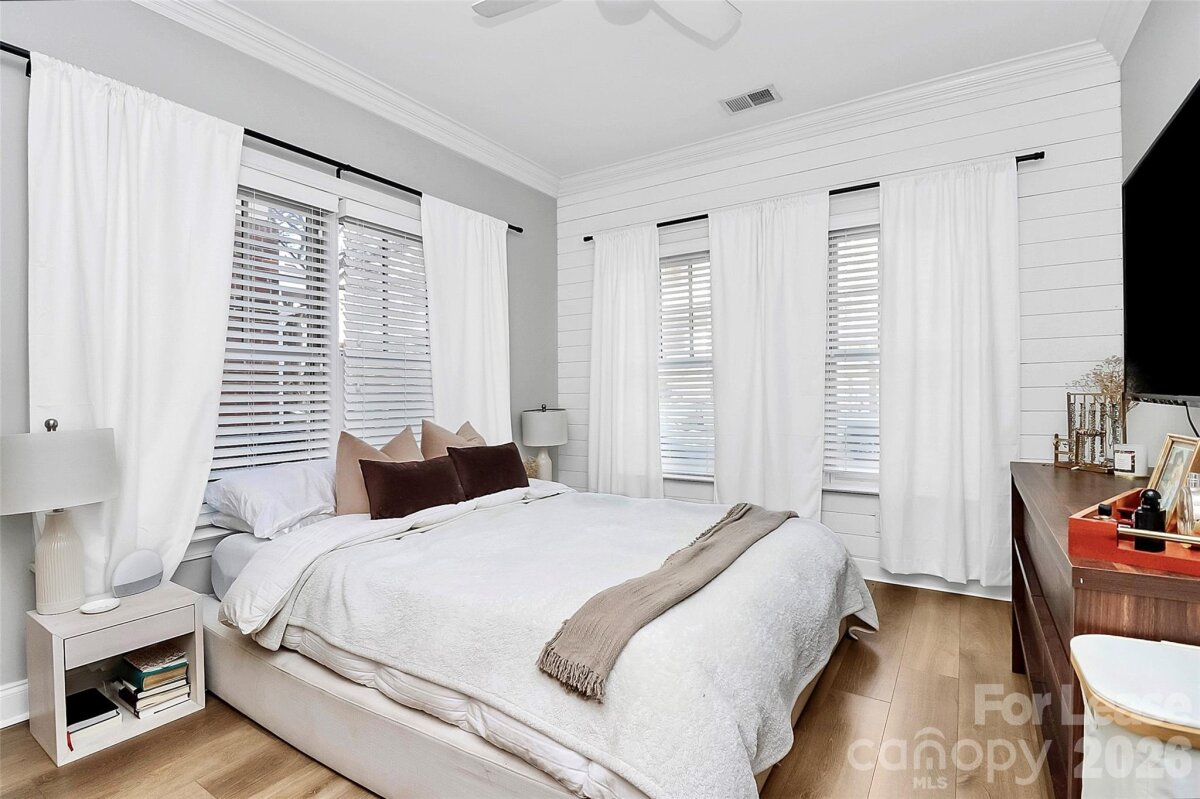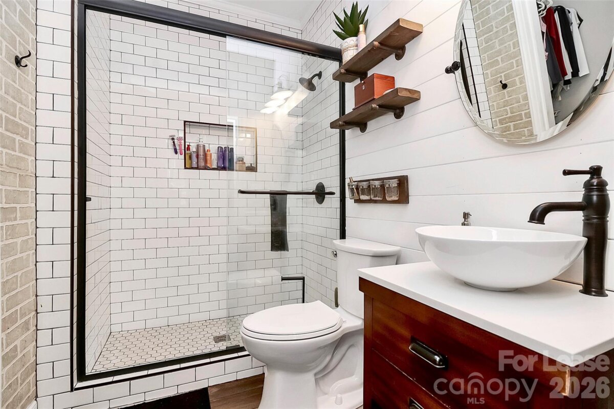 Now available for rent this rarely offered 2BR/2BA corner unit condo is ideally located in the heart of Wesley Heights within the desirable Wesley View community. Situated on the main level, this home features an open, light-filled layout with 9' ceilings and updated flooring throughout. The kitchen has been tastefully refreshed with white quartz countertops, creating a clean, modern feel that flows seamlessly into the main living space. Thoughtful upgrades throughout the home include a newer HVAC system (2022), tankless water heater, stackable washer and dryer, and dishwasher all recently replaced for added efficiency and convenience. Distinctive design elements such as exposed beam accents and sliding barn doors to both bathrooms add character, while the spacious primary suite provides ample closet space. Enjoy relaxing evenings with skyline views from the rear-facing windows. The location offers exceptional walkability to the Charlotte Gold Line, Frazier Park, Bank of America Stadium, along with a variety of popular breweries, restaurants, and entertainment options. Residents enjoy access to community amenities including off-street parking, a shared patio, and grill area. Rent includes water and sewer. Opportunities like this don't come along often in one of Charlotte's most sought-after neighborhoods reach out today to schedule your private showing! Owner pays for water and trash collection, tenant just needs to cover electric and cable/internet. Security system is optional but would be a tenant cost.