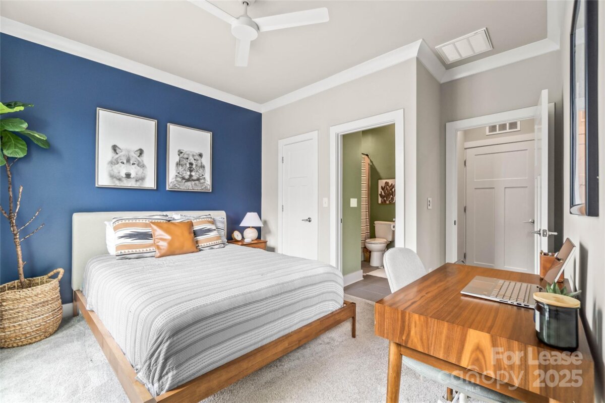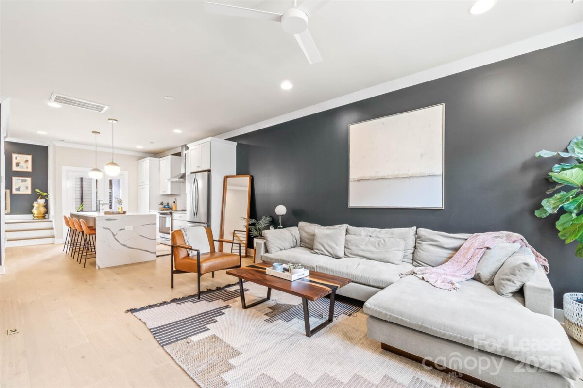 Stunning 2 bedroom luxury townhome perfectly situated in Wesley Heights and walkable to the free Lynx Gold Line transit system! Elevate your Charlotte living experience with this private rooftop terrace overlooking the city skyline. Other features include a high-end kitchen fully equipped with stainless steel appliances, quartz countertops, shaker style cabinets, and a spacious island perfect for entertaining. The 2 car garage offers convenient and secure parking. Close proximity to major highways I-77 and I-85 ensures easy commutes throughout the Charlotte area. This townhome is perfect for those looking for modern living in a prime location!